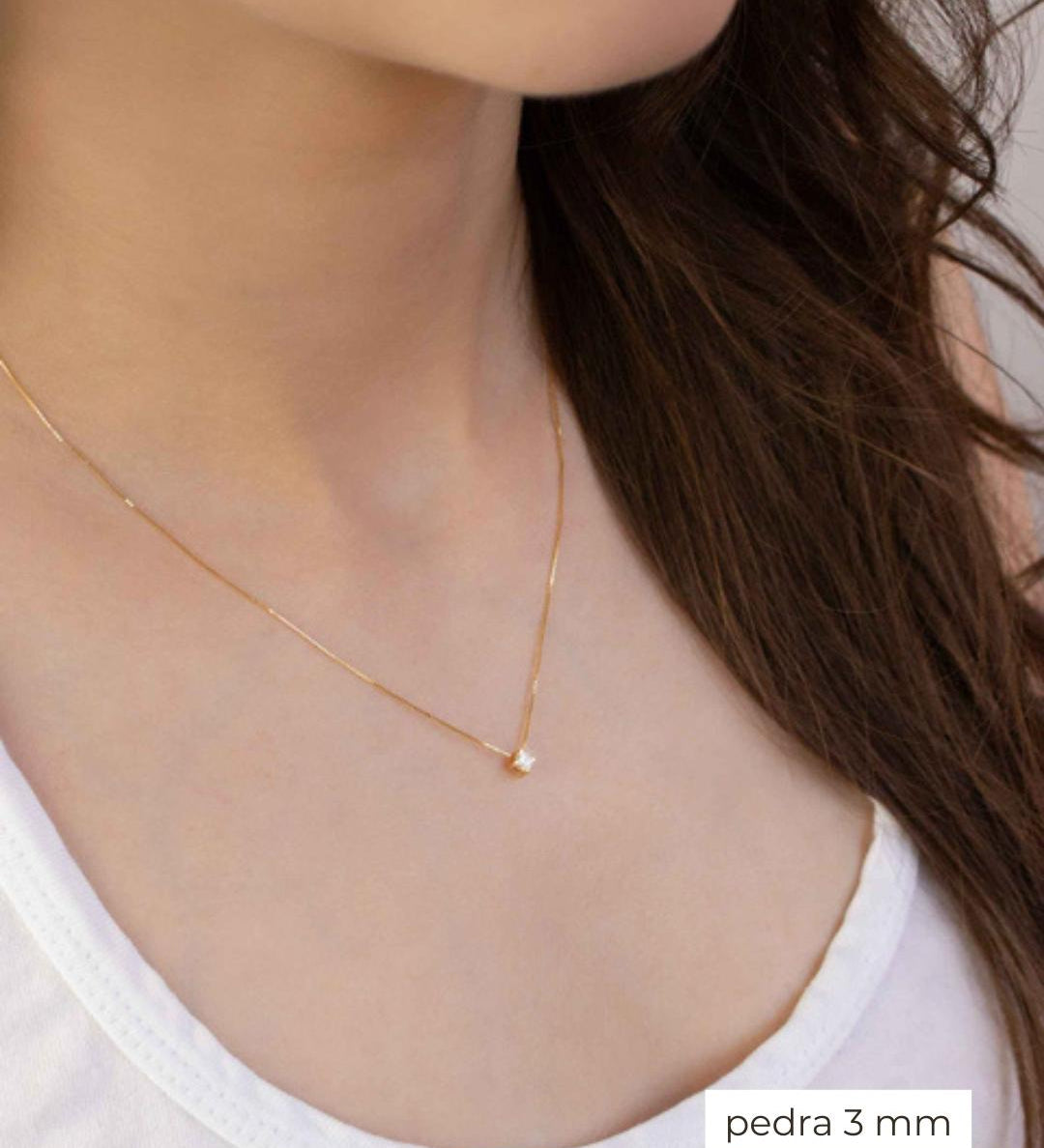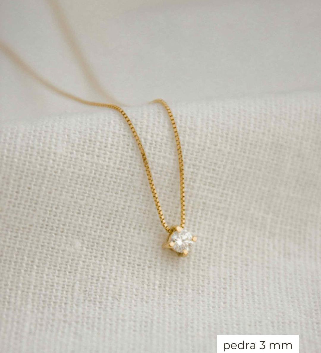 Colar Ponto de Luz Zircônia ou Diamante Ouro 18K