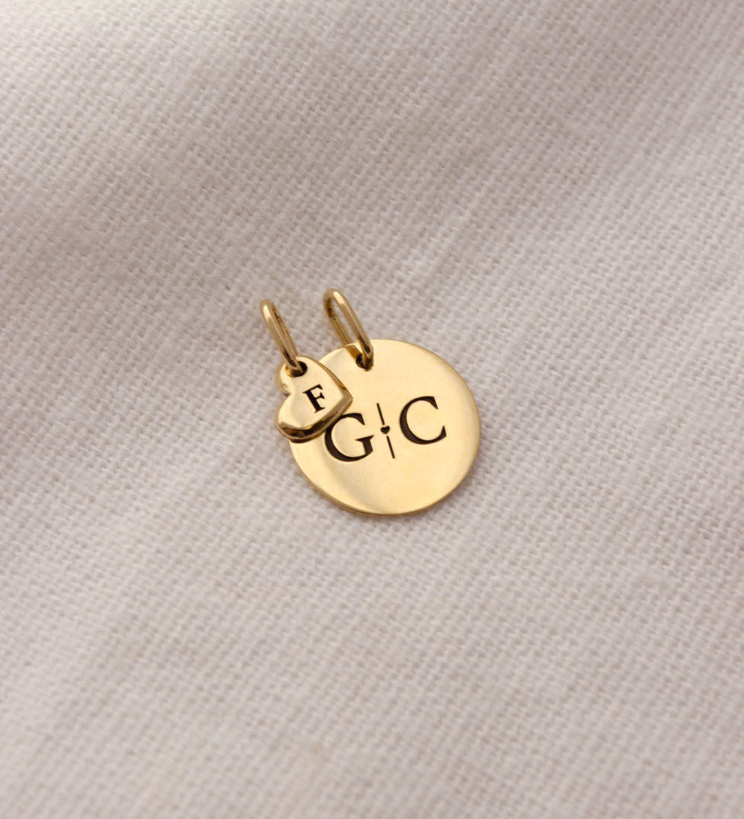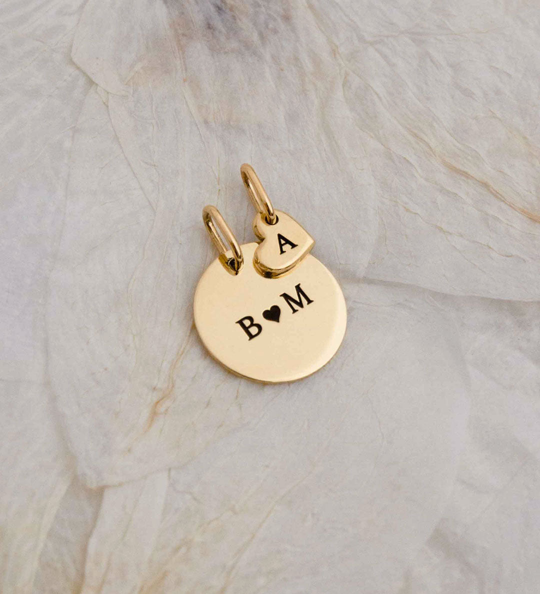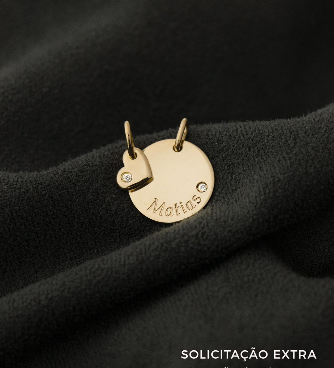 Kit Pingentes Personalizados Redondo 12mm e Coração Mini Ouro 18K