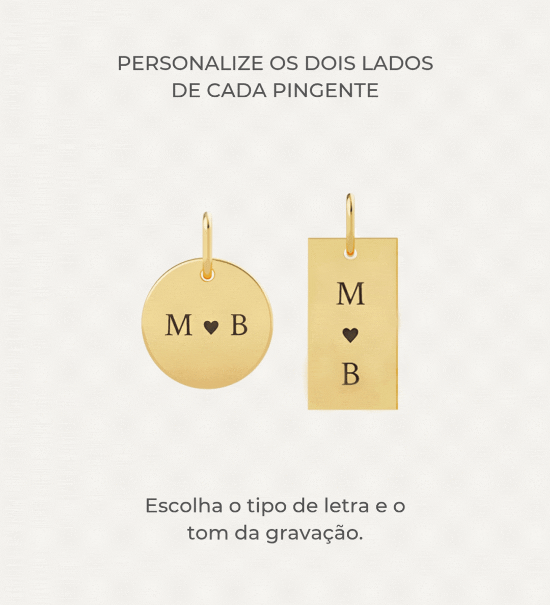Kit Pingentes Personalizados Redondo + Retangular Ouro 18K