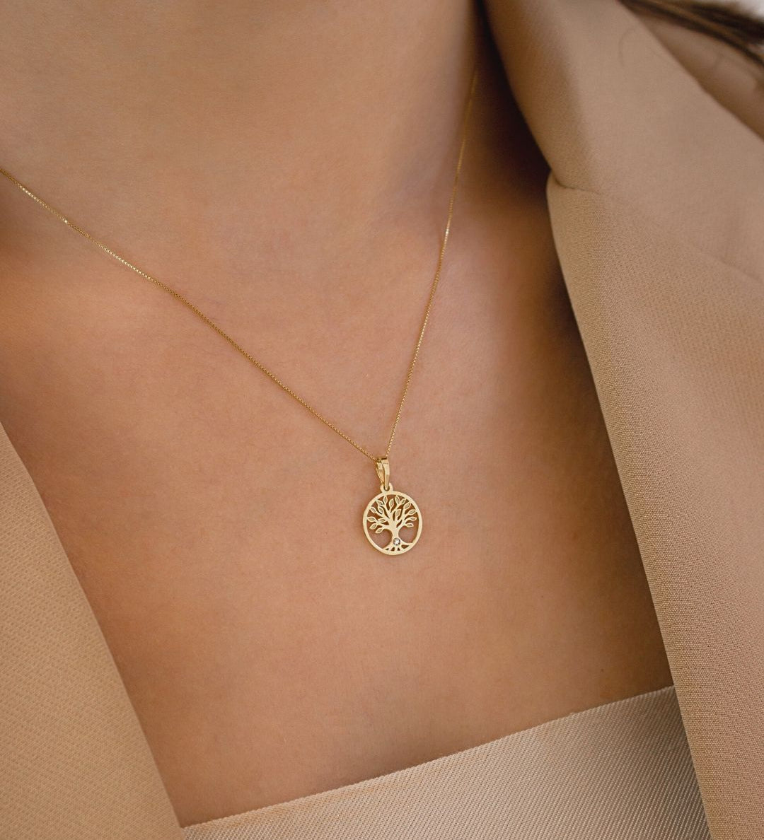 Pingente Árvore da Vida com Brilhante Ouro 18K