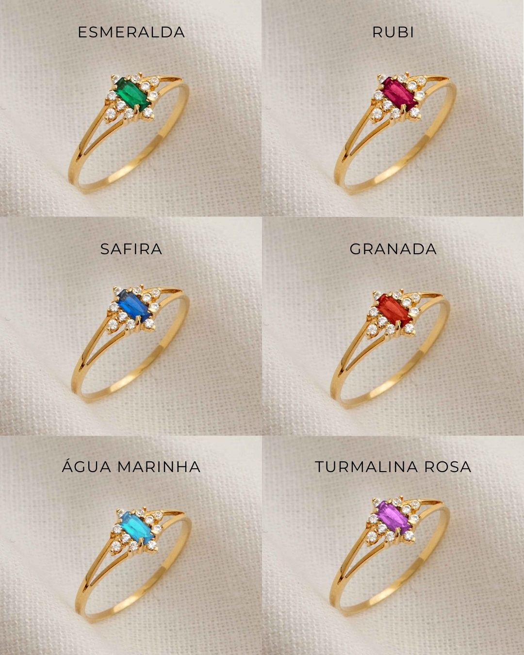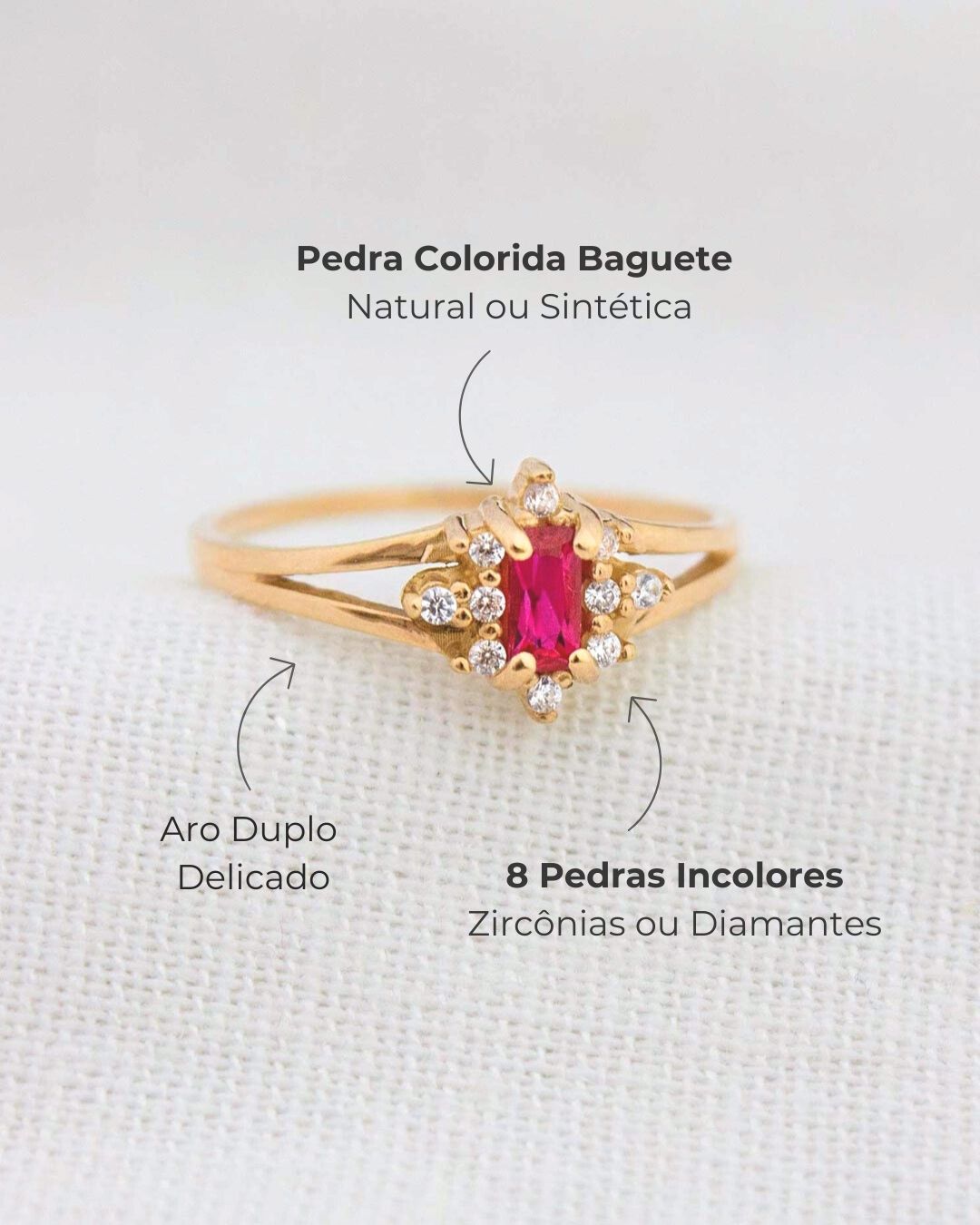 Pedra do Curso: Esmeralda, Rubi, Safira, Granada, Água Marinha ou Turmalina Rosa (Baguete de 5mm x 3mm)
