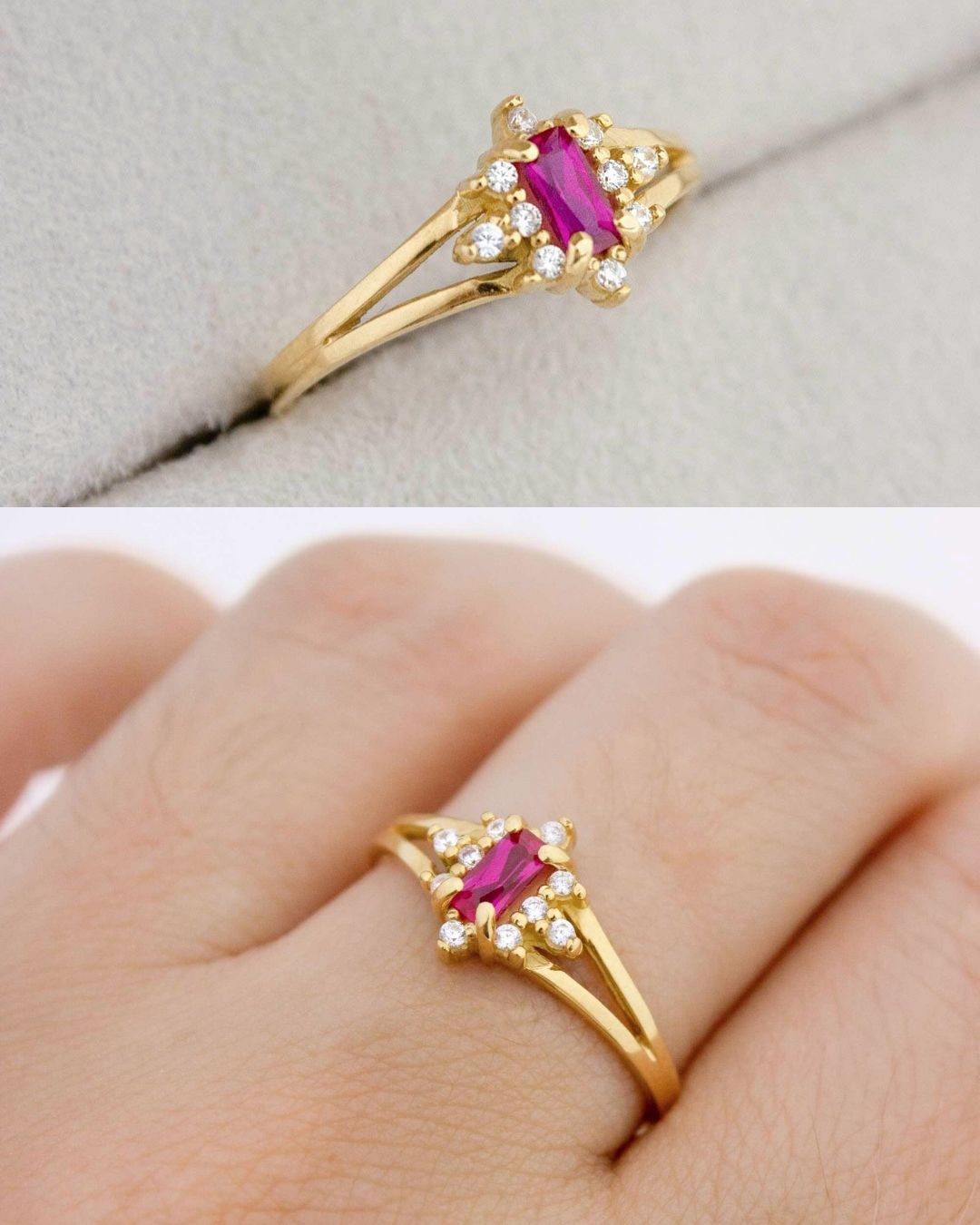 Anel Formatura Baguete Aro Duplo Ouro 18K