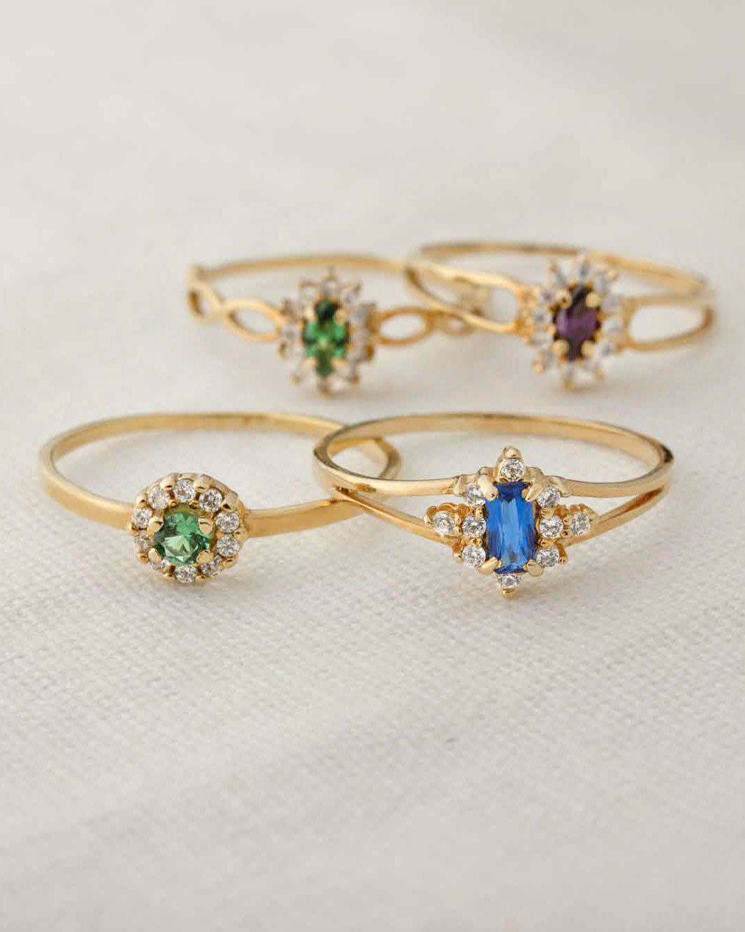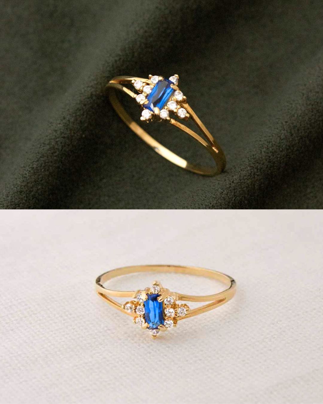 Safira: é uma variedade do mineral coríndon conhecida por sua cor azul. Ela representa o romance, quando em pedidos de noivado, a nobreza, muito incorporada em joias da realeza, e também a pureza e a fé.