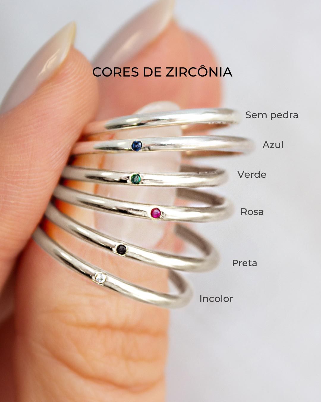 No Anel Memórias de Prata 950 temos 5 cores de zircônias para você escolher, além da opção de anel sem pedra.