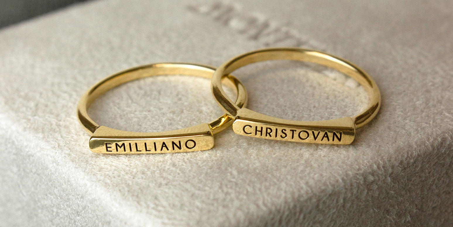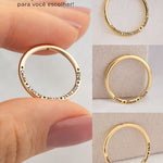 Escolha entre 3 estilos de letras para eternizar mensagens no aro. Grave os dados de nascimento de um filho, nomes de pessoas queridas, datas ou frases especiais!