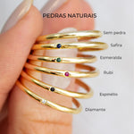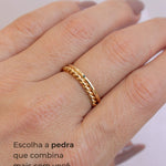 No Anel Memórias de Ouro 18K temos 5 cores de pedras naturais para você escolher, além da opção de anel sem pedra.