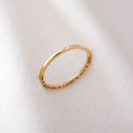 Tudo isso pode ser gravado no aro personalizável do anel com fontes selecionáveis, junto de uma pedra natural de sua escolha cravejada. O anel é feito de ouro maciço e possui um belíssimo acabamento polido.