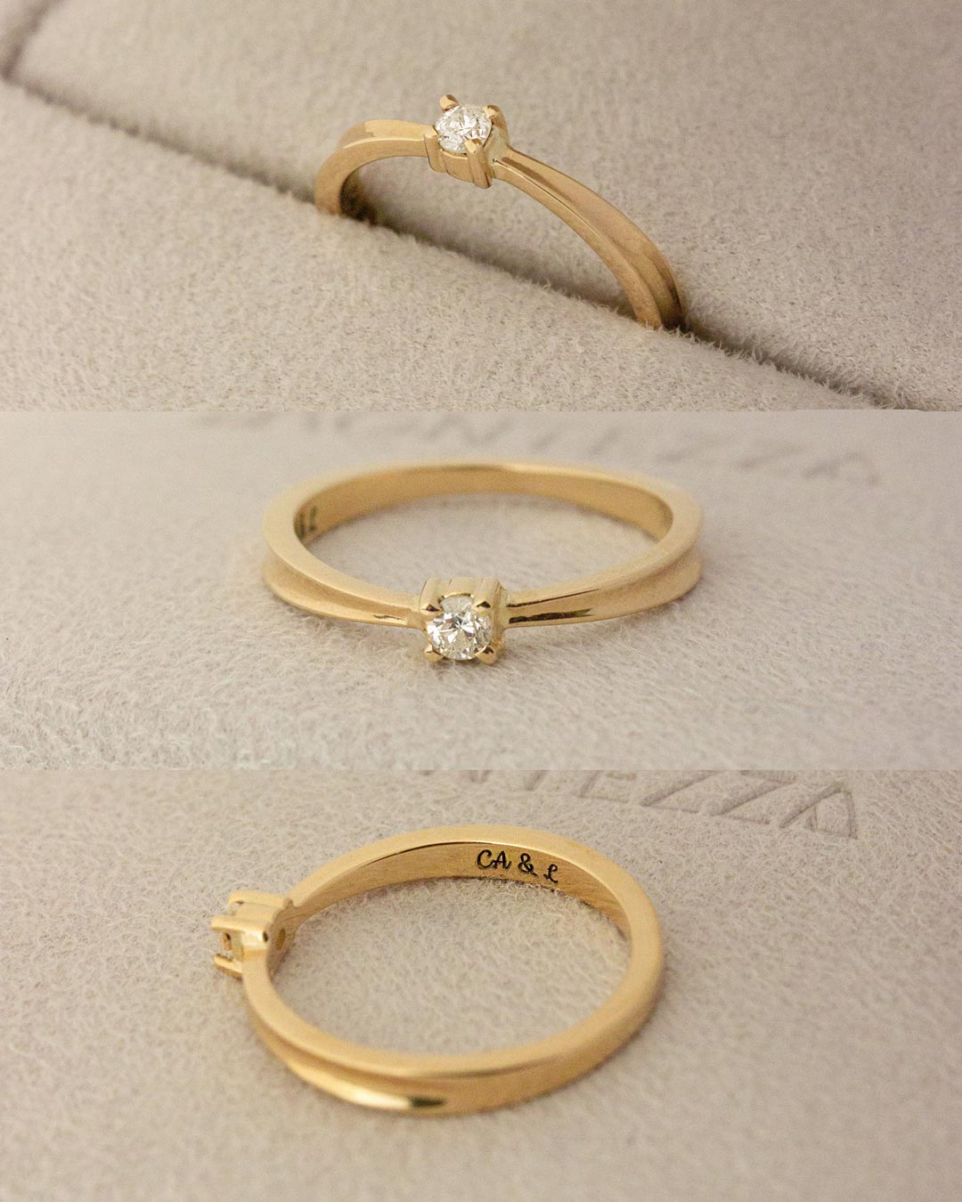 Nosso anel solitário é feito em ouro maciço 18K e possui um belíssimo acabamento polido.
