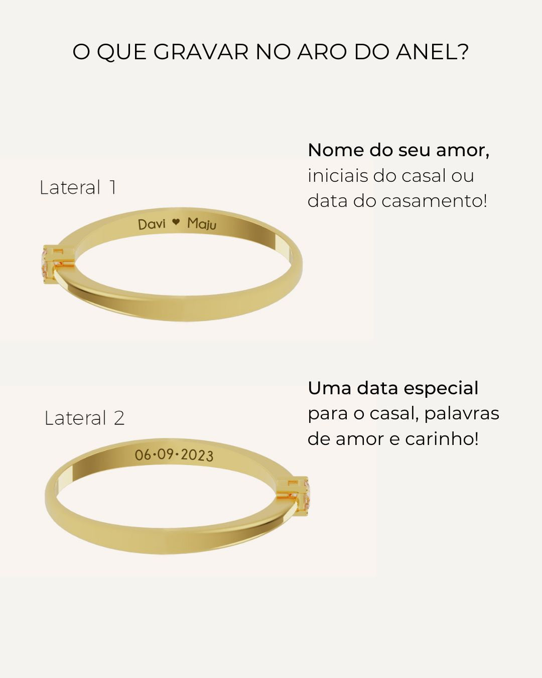 Nosso anel solitário é feito em ouro maciço 18K e possui um belíssimo acabamento polido.