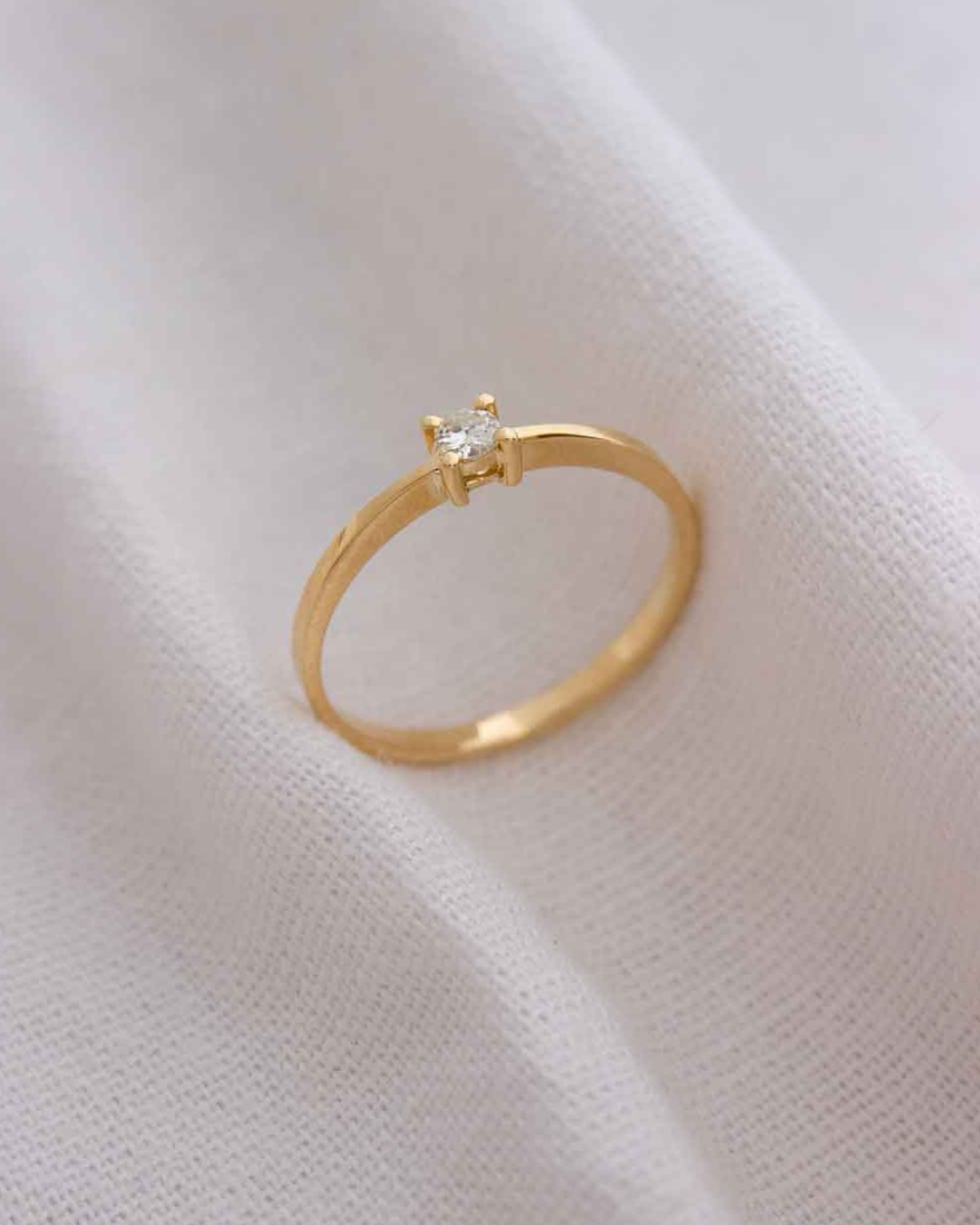 Anel Solitário Personalizado Aro Afinado 10 Pontos Ouro 18K