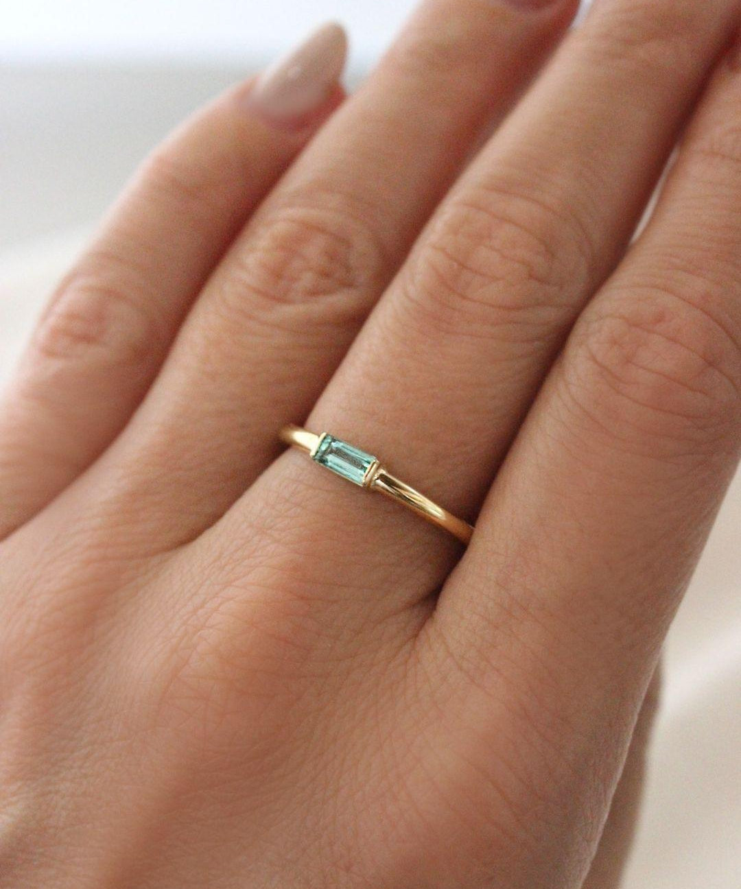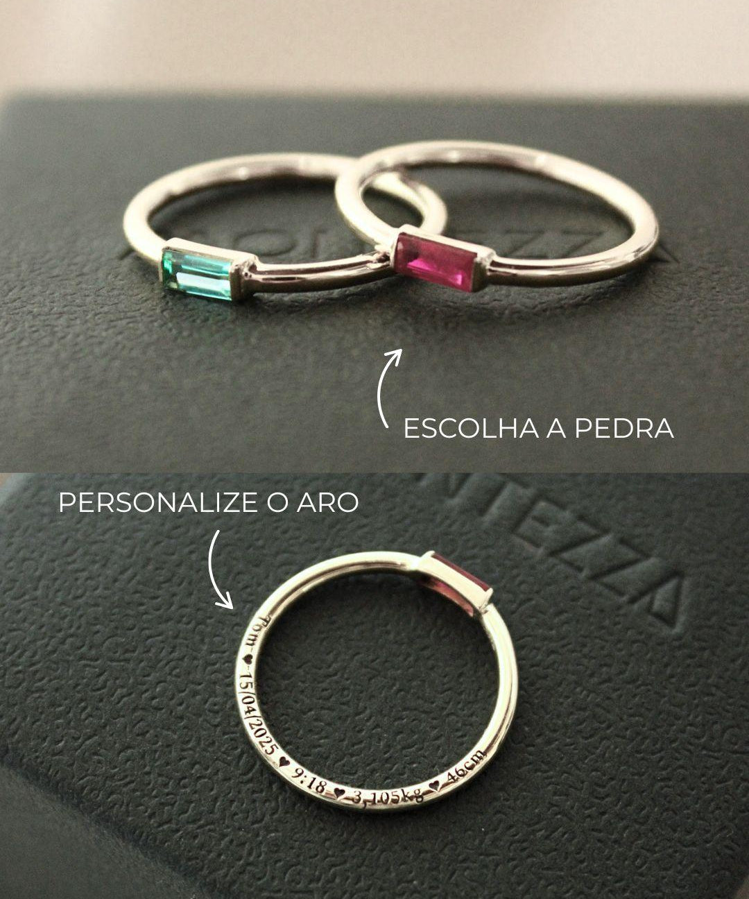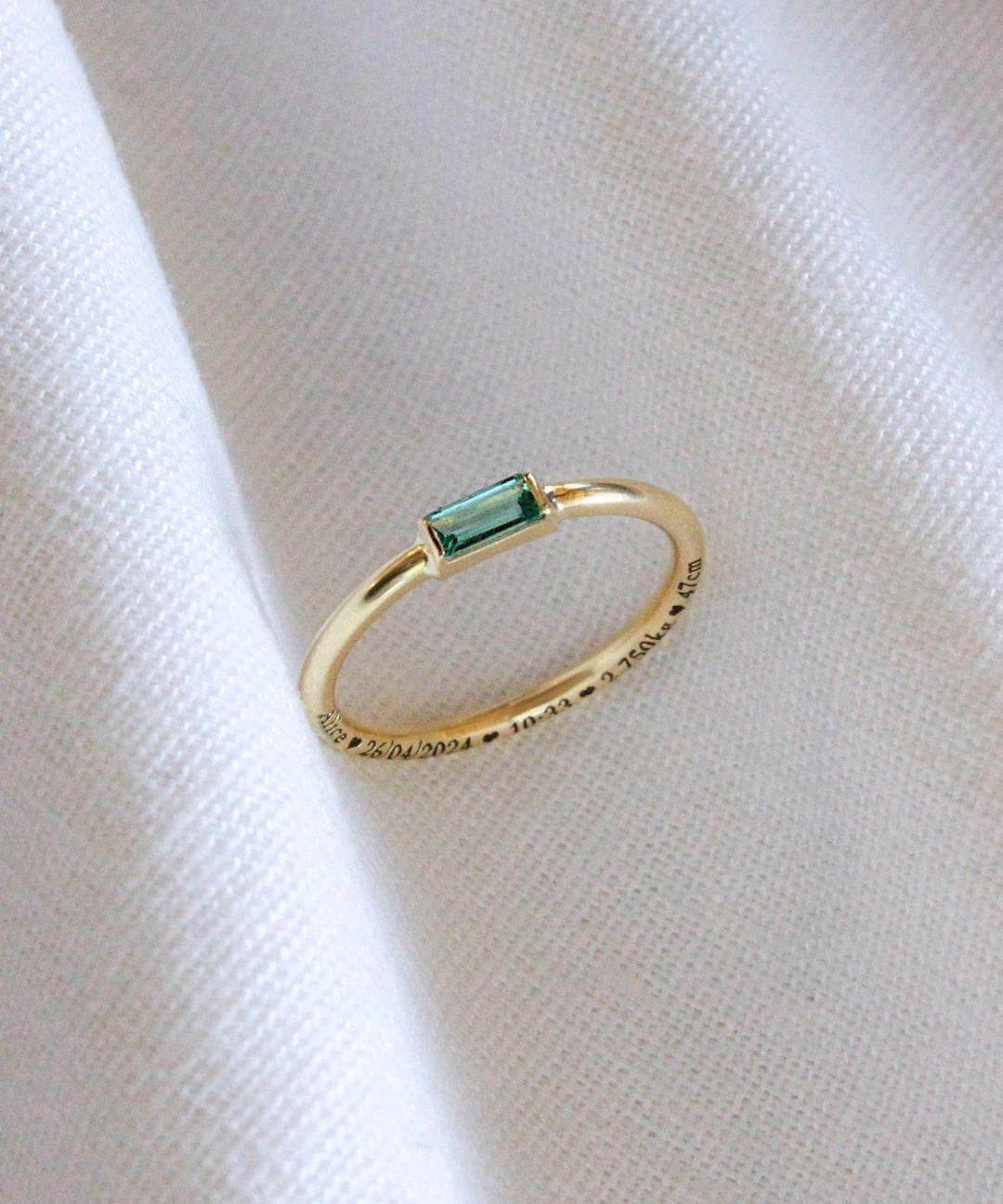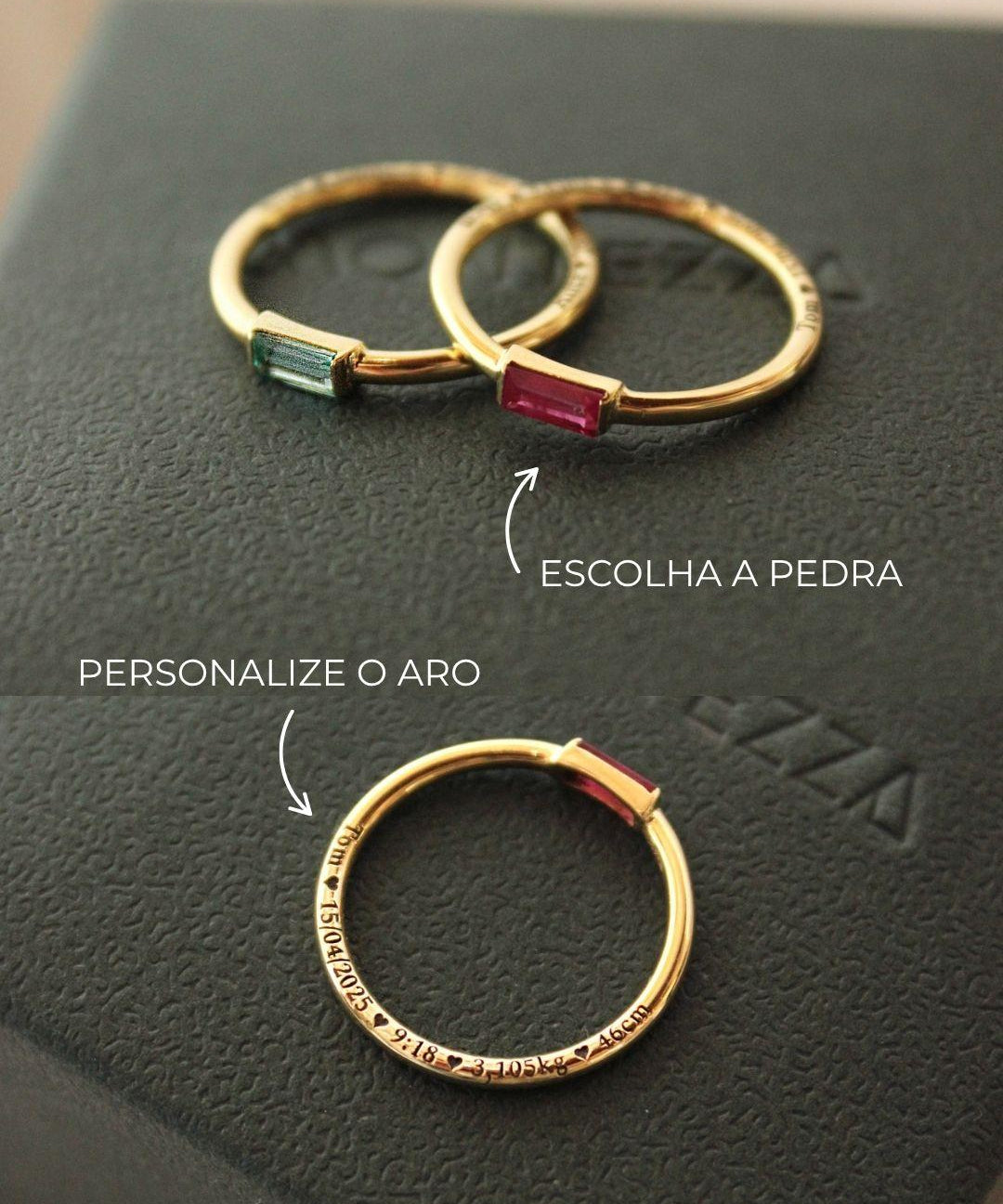 Anel Baguete Memórias Lili Personalizado Ouro 18K