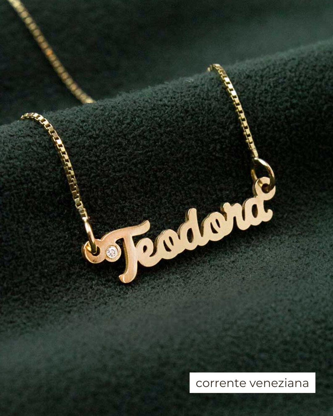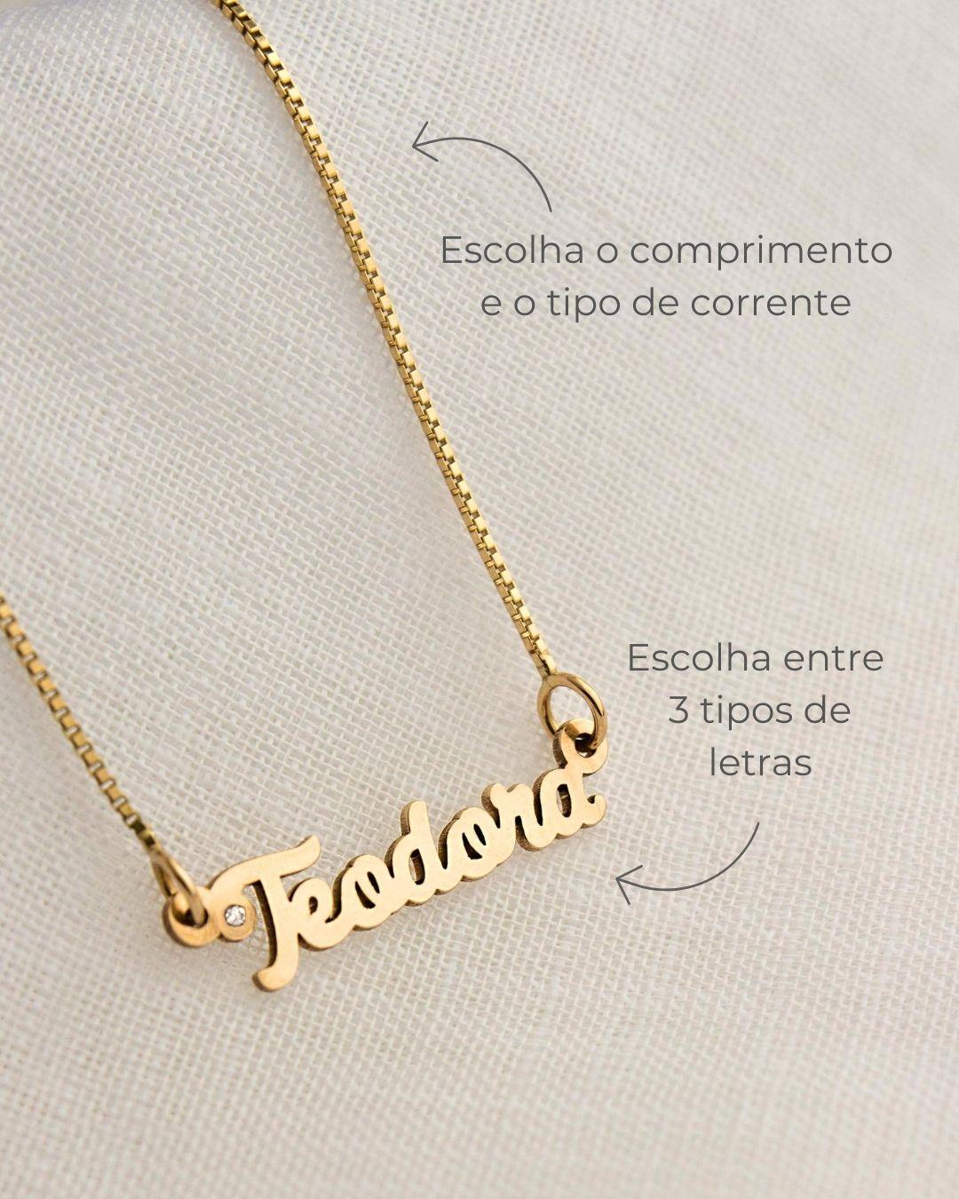 O nome no pingente pode possuir até 10 caracteres com tamanho e fonte selecionáveis por você. E ainda, você pode escolher colocar uma pedra zircônia ou diamante no seu pingente.