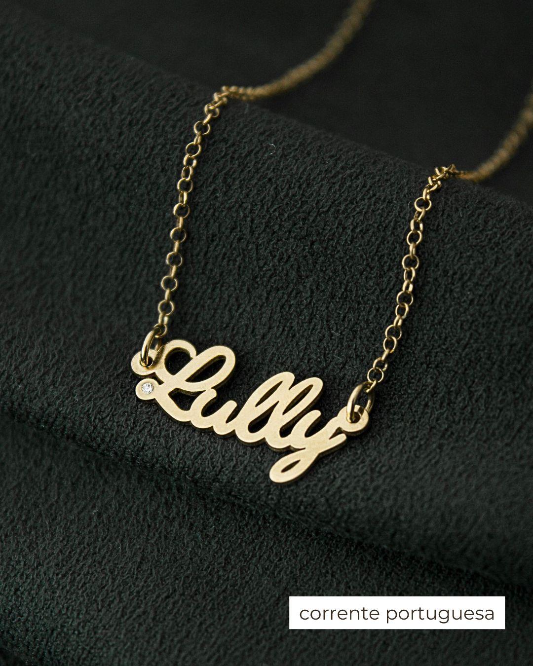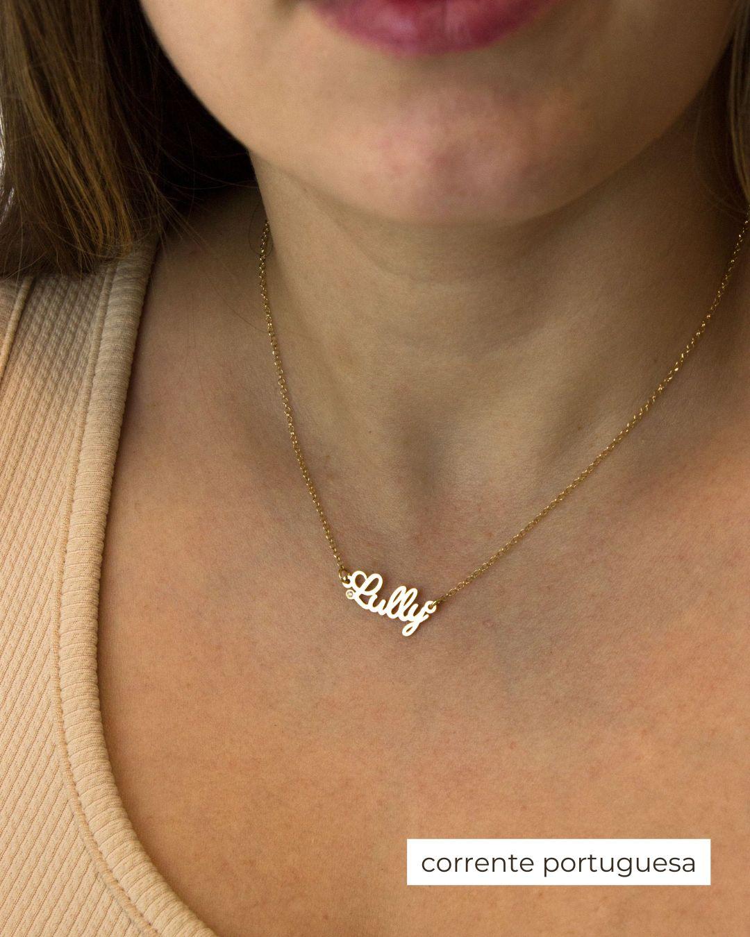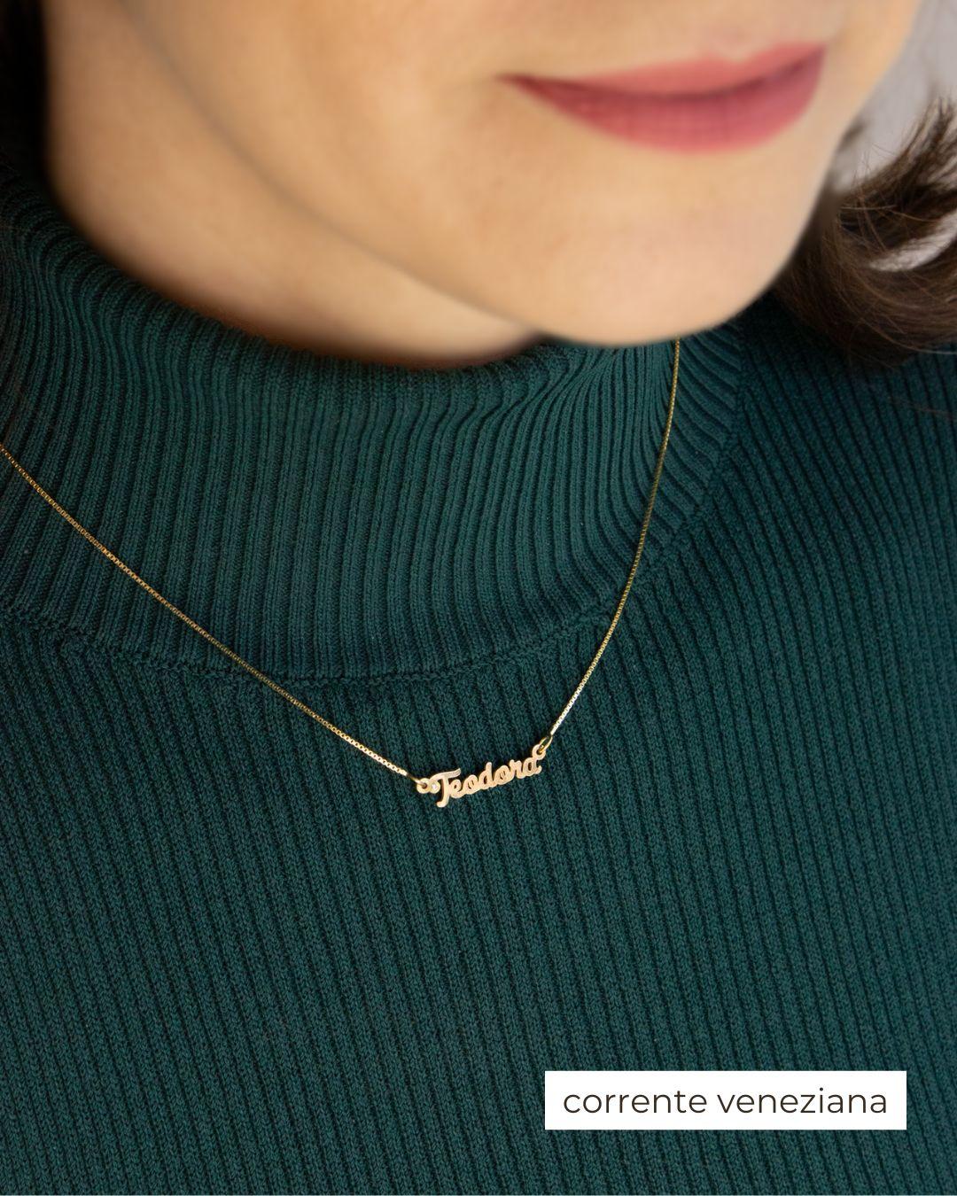 O colar é composto por uma corrente de sua escolha (veneziana ou portuguesa) que possui três diferentes tamanhos para serem selecionados: 40 cm, 45 cm ou 50 cm.