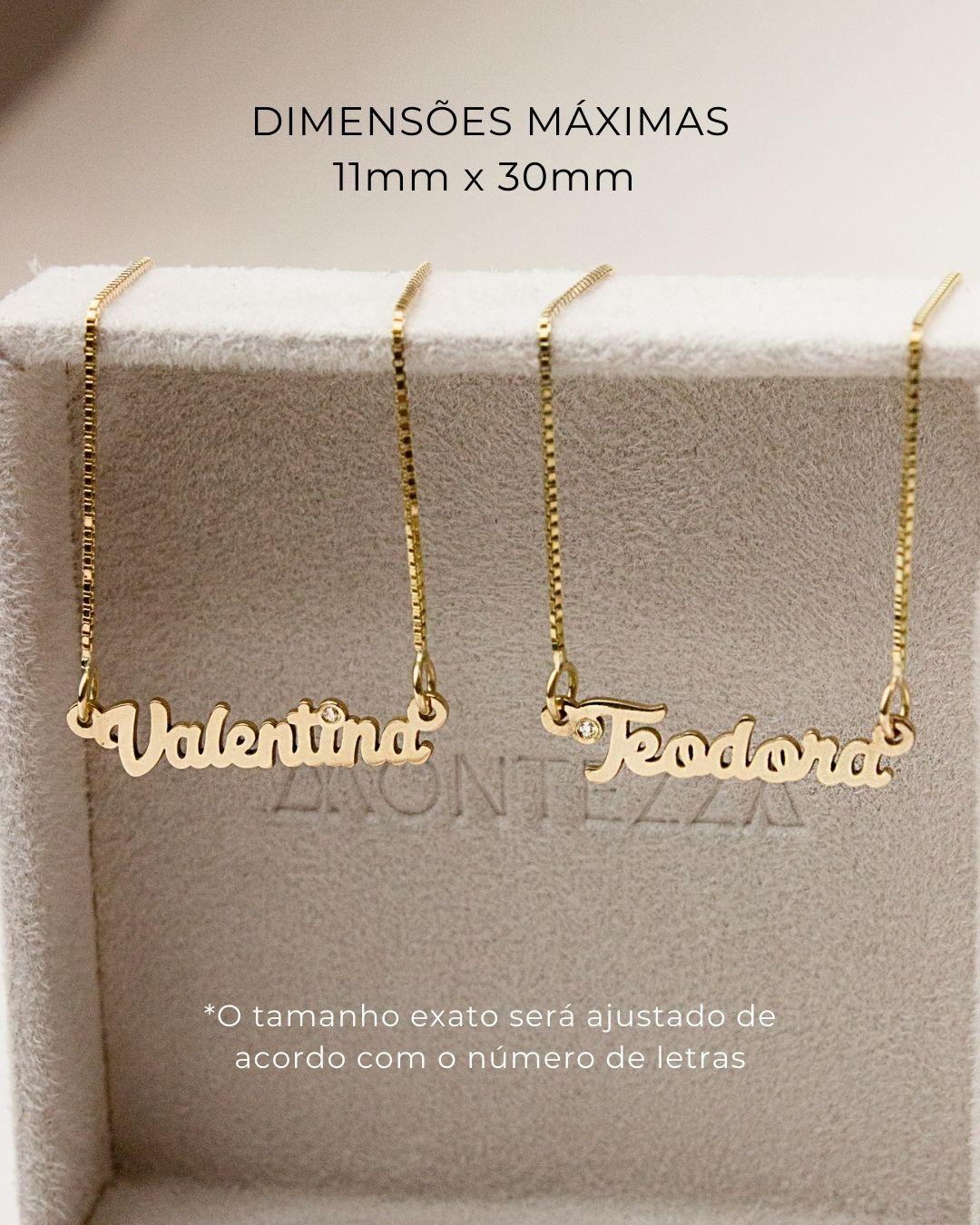 Observação: as dimensões do pingente variam em função do número de caracteres do nome e a fonte selecionada.