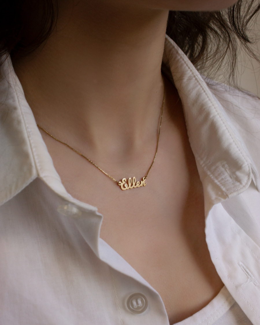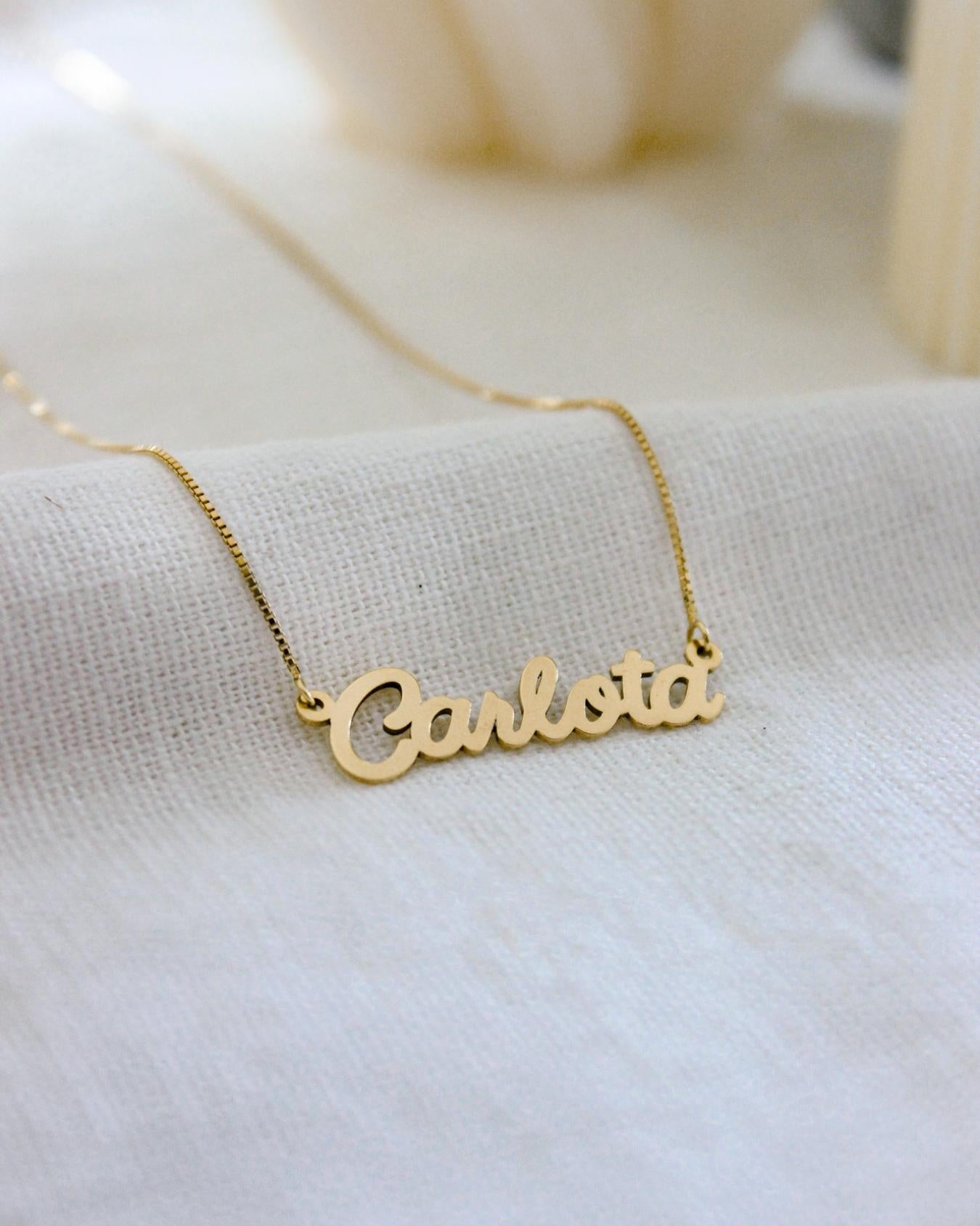 Feito totalmente em ouro 18K, o colar nome une delicadeza e personalização à sua joia. Use seu próprio nome ou o nome de quem você ama ao montar o seu pingente para o colar, fazendo com que esta joia tenha um significado único e especial.