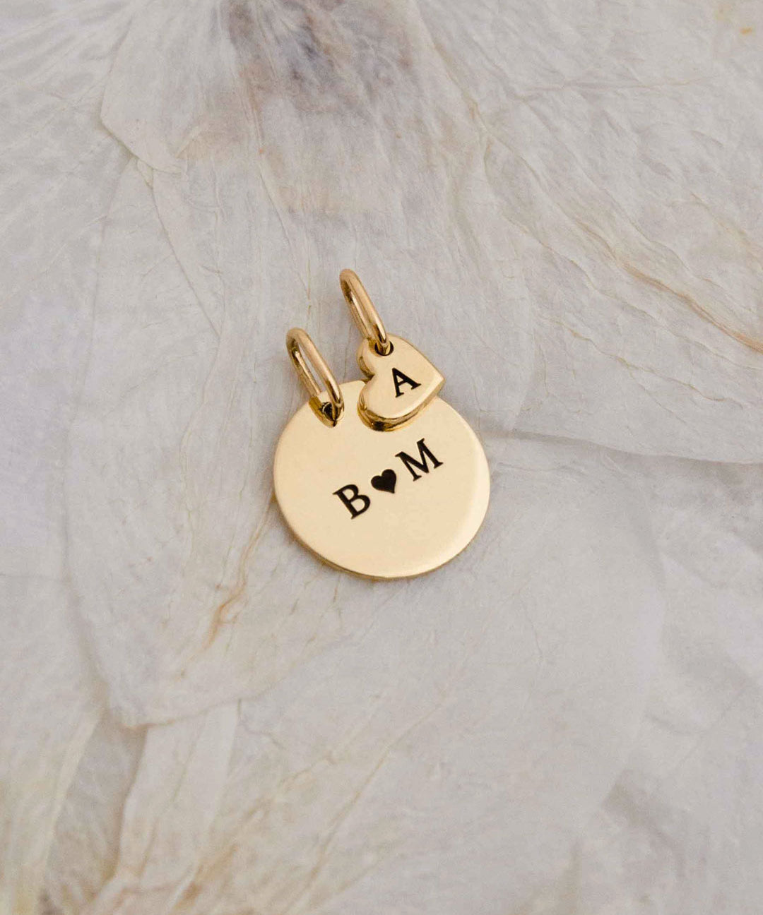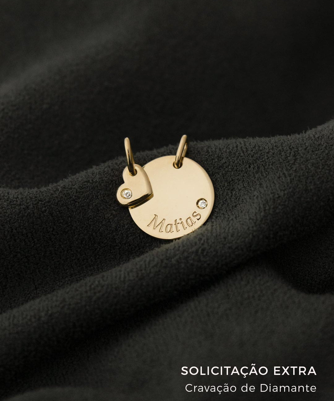 Kit Pingentes Personalizados Redondo 12mm e Coração Mini Ouro 18K