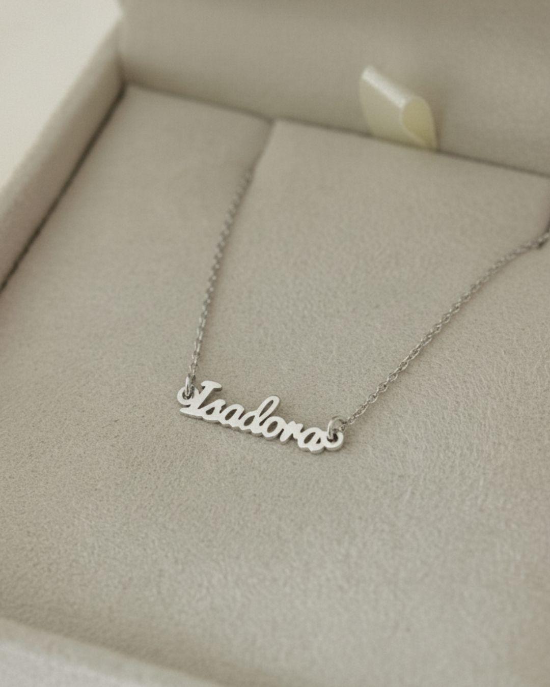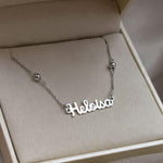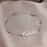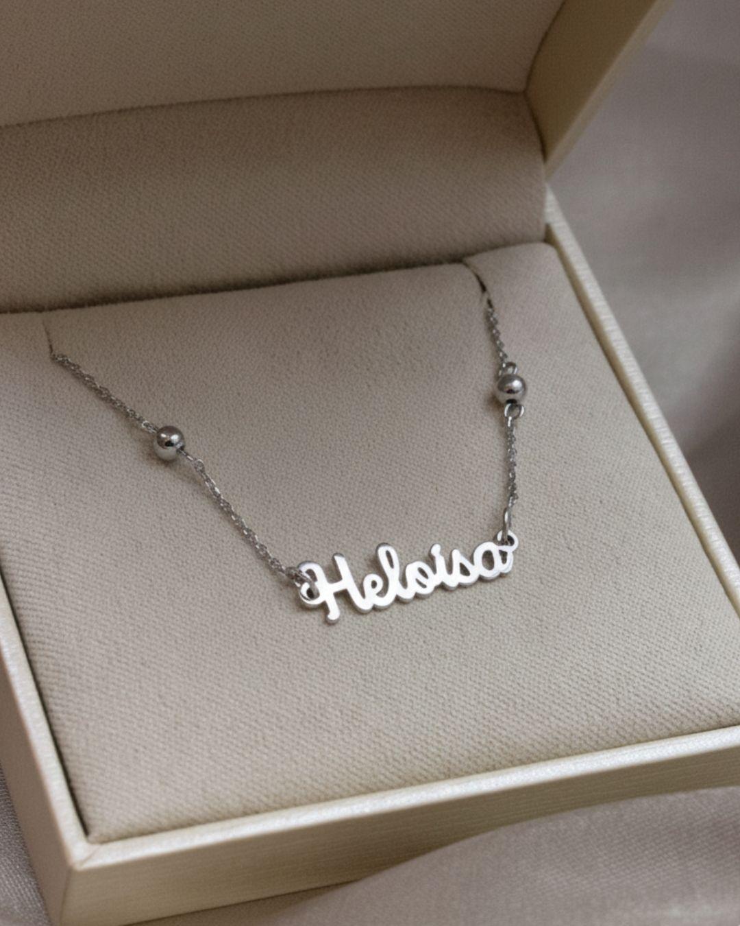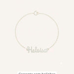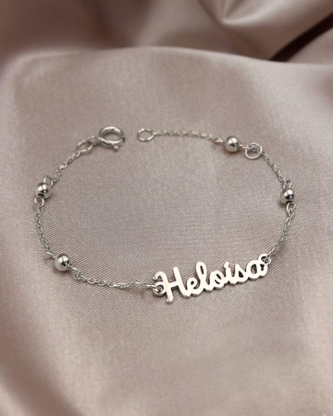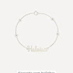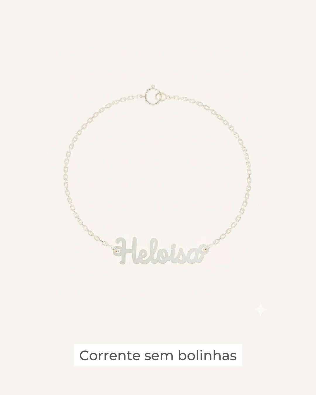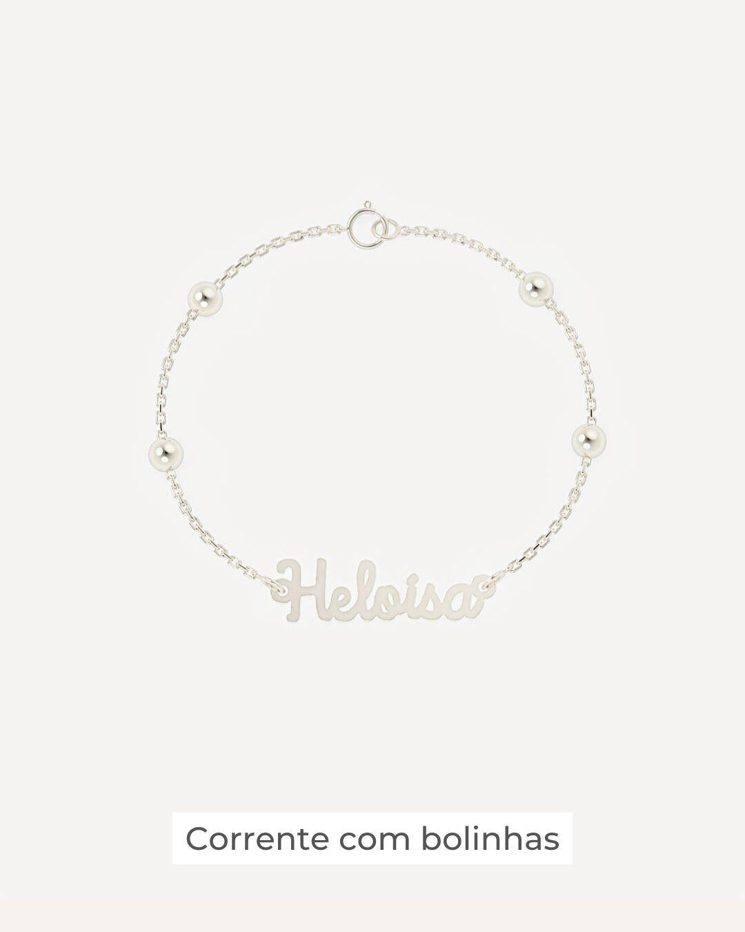 Em sua versão em Prata 950, traz a pulseira em elos cadeadinhos, bem como o nome também em prata. Você pode escolher se quer a corrente simples ou acompanhada de bolinhas de prata maciças.