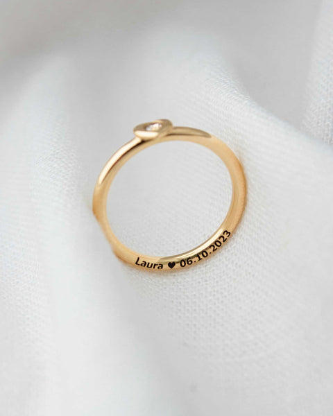 Eternize amor e carinho nessa joia com significado e beleza na mesma proporção! Este anel possui um coração delicado no topo e permite a gravação de algo único no aro memórias. Você pode escolher se quer o coraçãozinho com diamante ou sem, além de personalizar o aro com mensagens especiais.