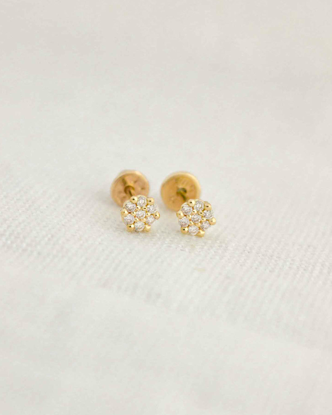 Brinco Baby Flor Pavê Diamantes Ouro 18K