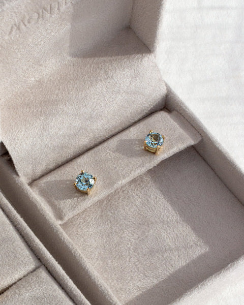 O Brinco Solitário Topázio Sky Ouro 18K leva um desenho clássico que sempre acompanha a mulher pela sua atemporalidade. Carrega uma gema de Topázio Sky natural de 6 mm que realça a beleza da peça com sua cor azul claro.