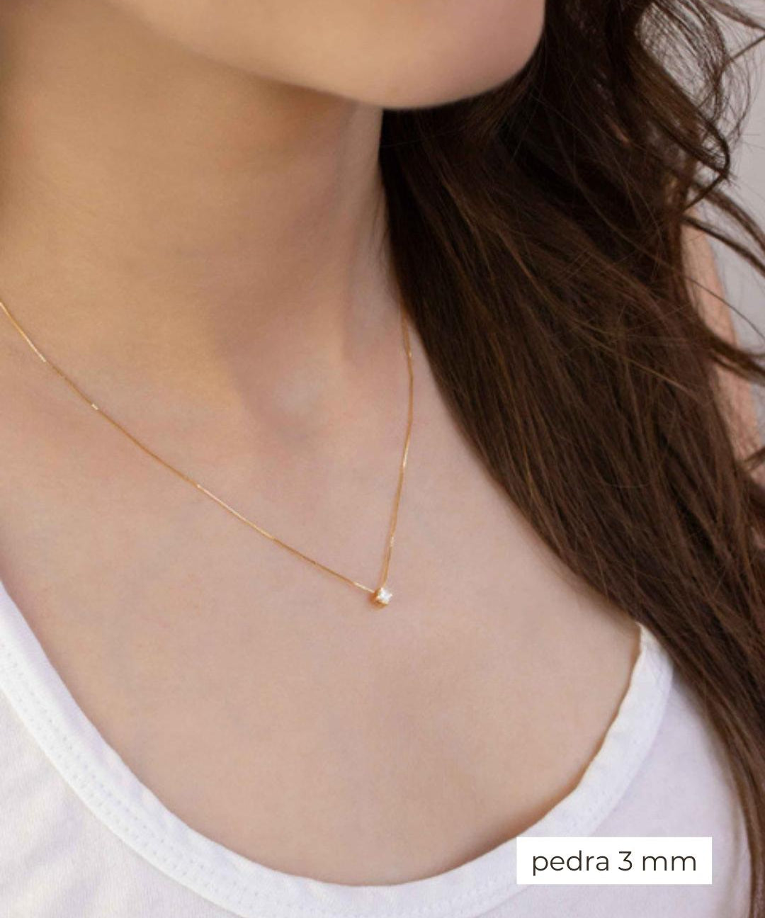 Colar Ponto de Luz Zircônia ou Diamante Ouro 18K