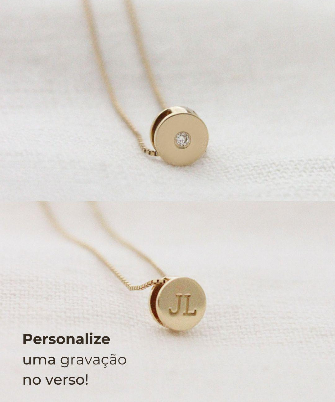 Pingente Foto Personalizado Redondo Ouro 18K