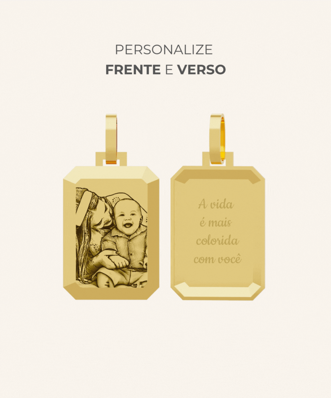 Pingente Facetado Foto Personalizado Ouro 18K