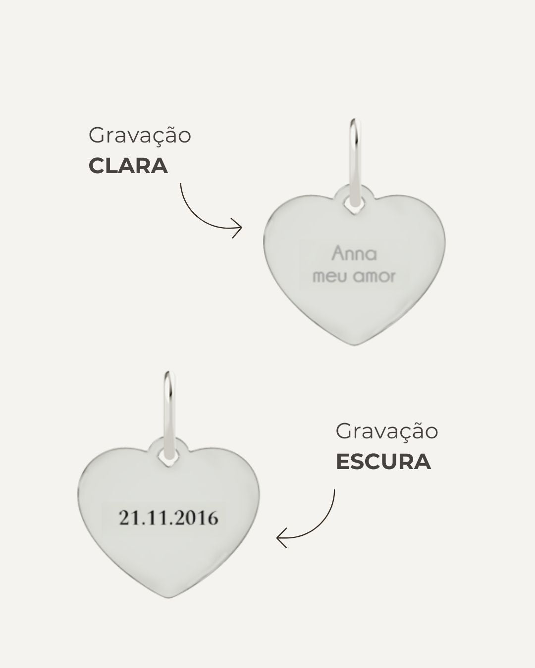 Confira a comparação de tamanhos dos pingentes.