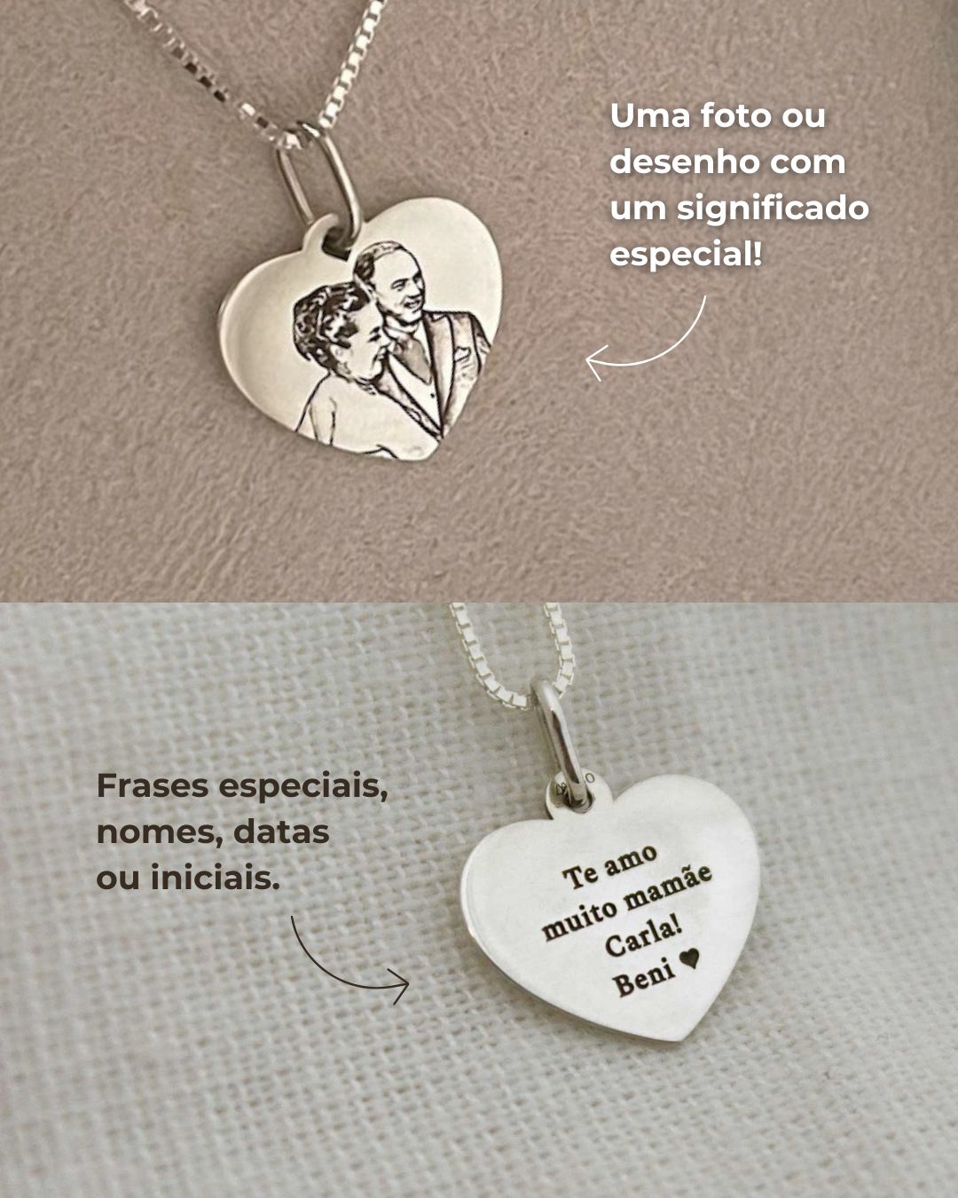 - Amor: um trecho de música, uma frase fofa, as iniciais ou nomes do casal.