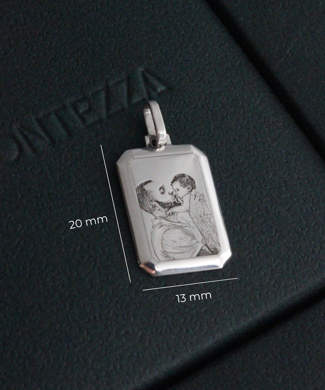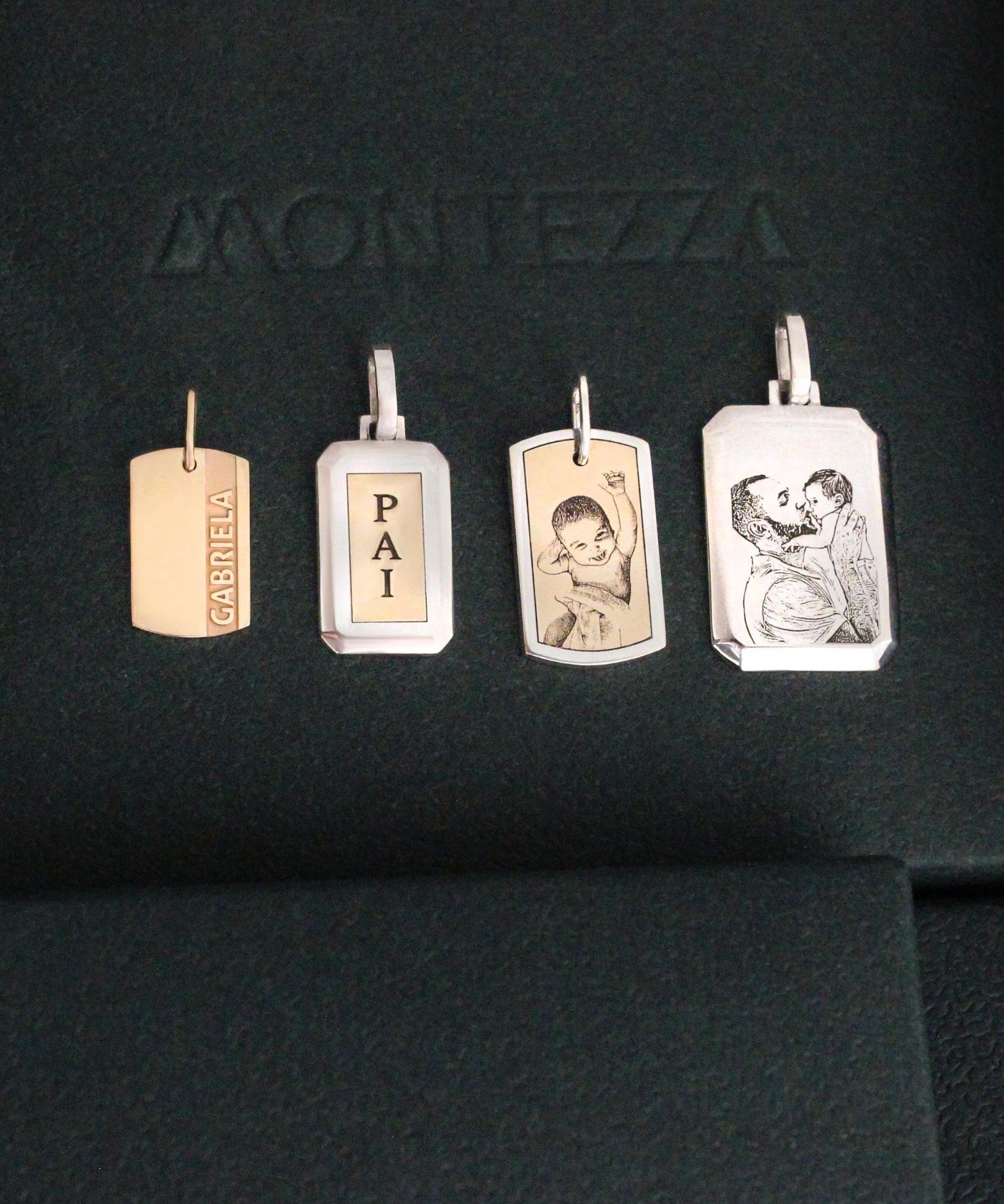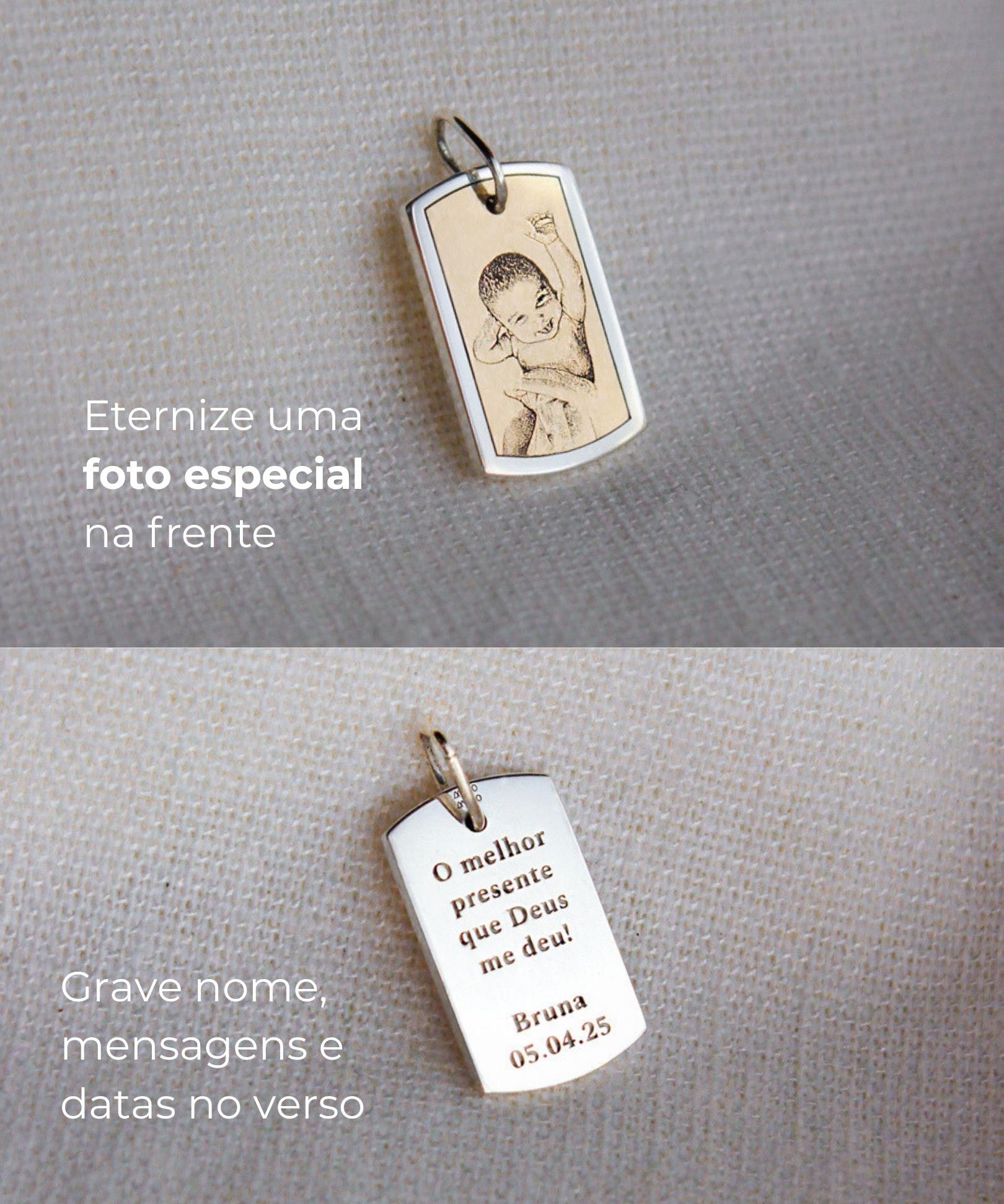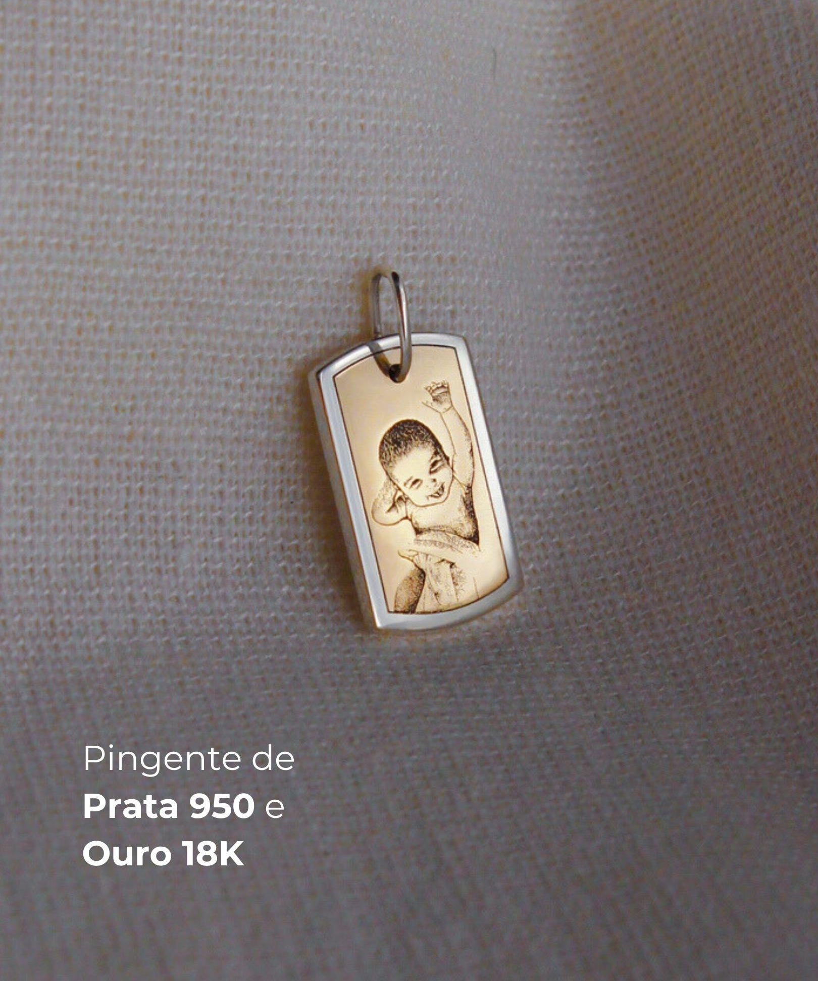 Pingente Placa Foto Personalizado Ouro 18K e Prata 950
