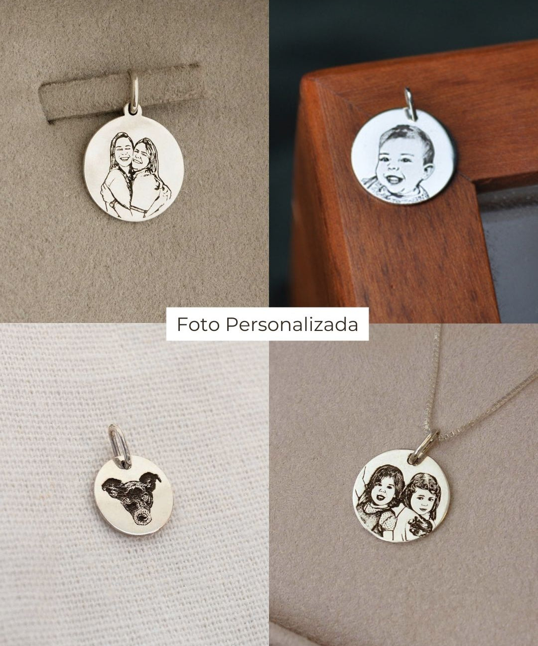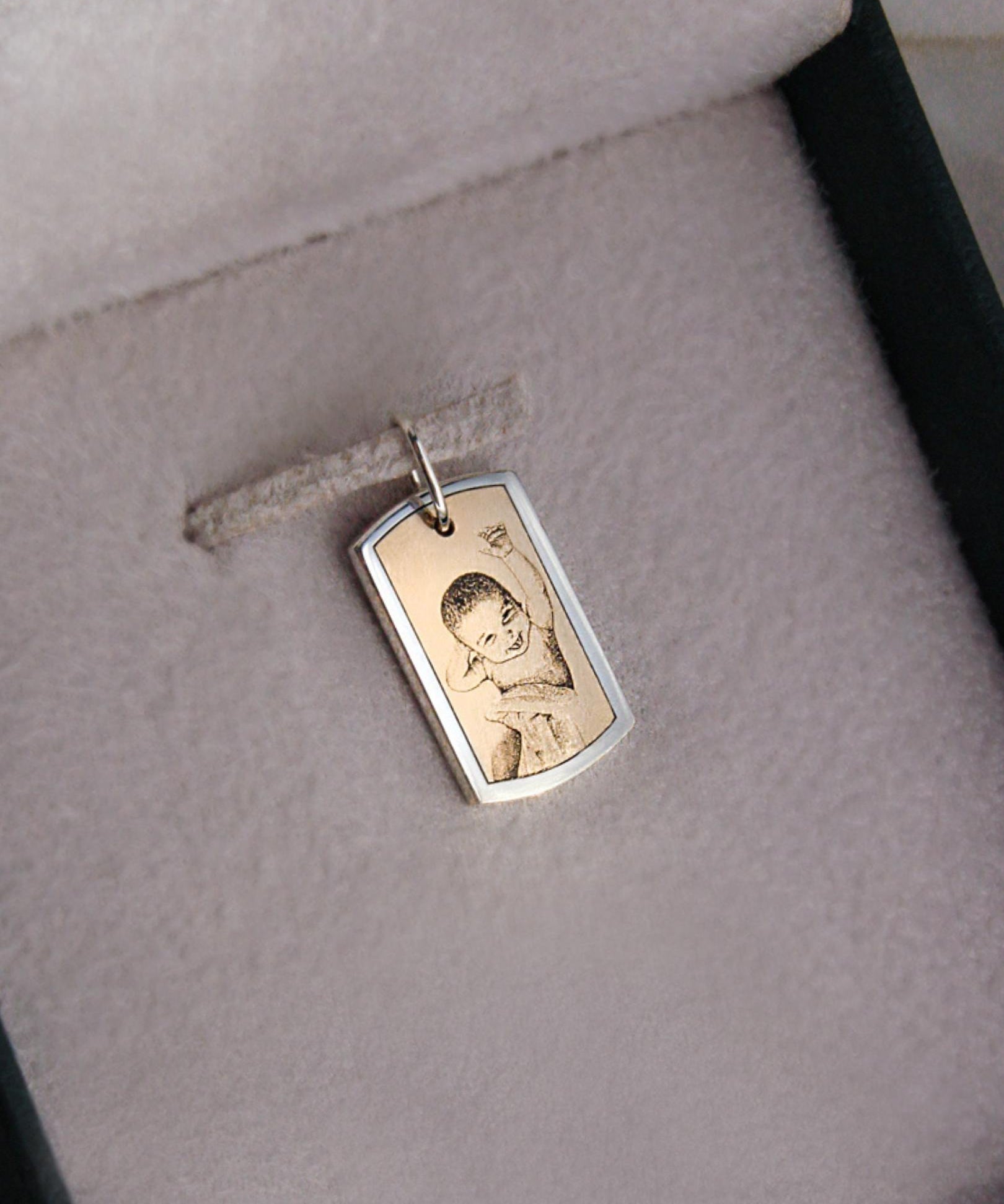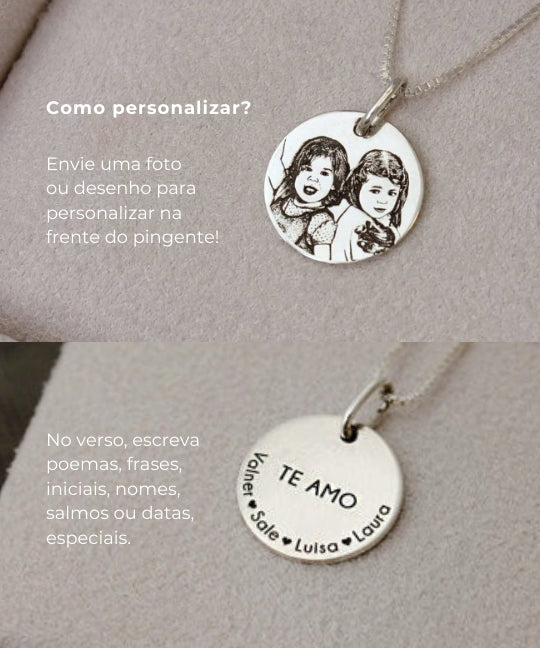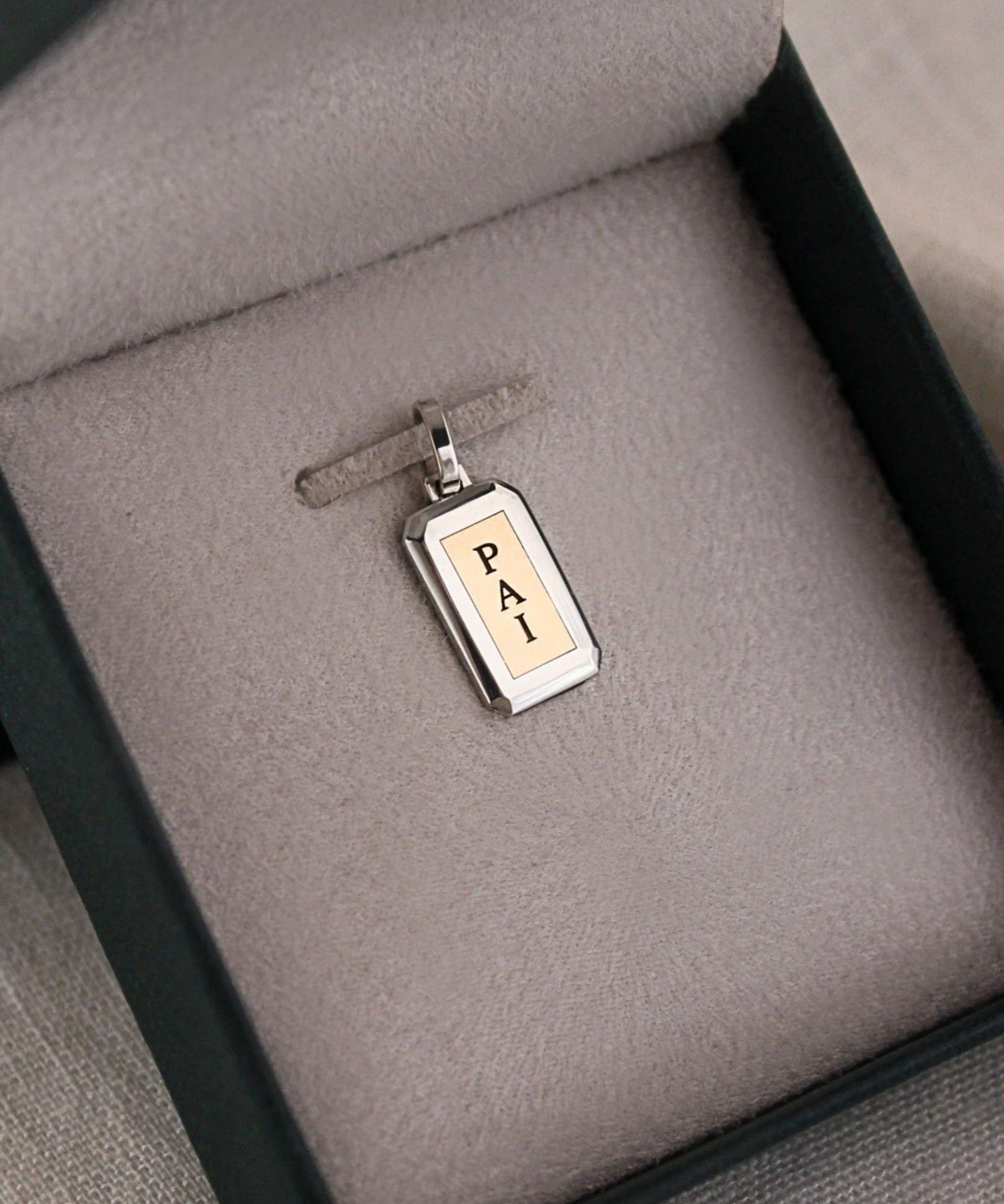 Pingente Placa Foto Personalizado Ouro 18K e Prata 950