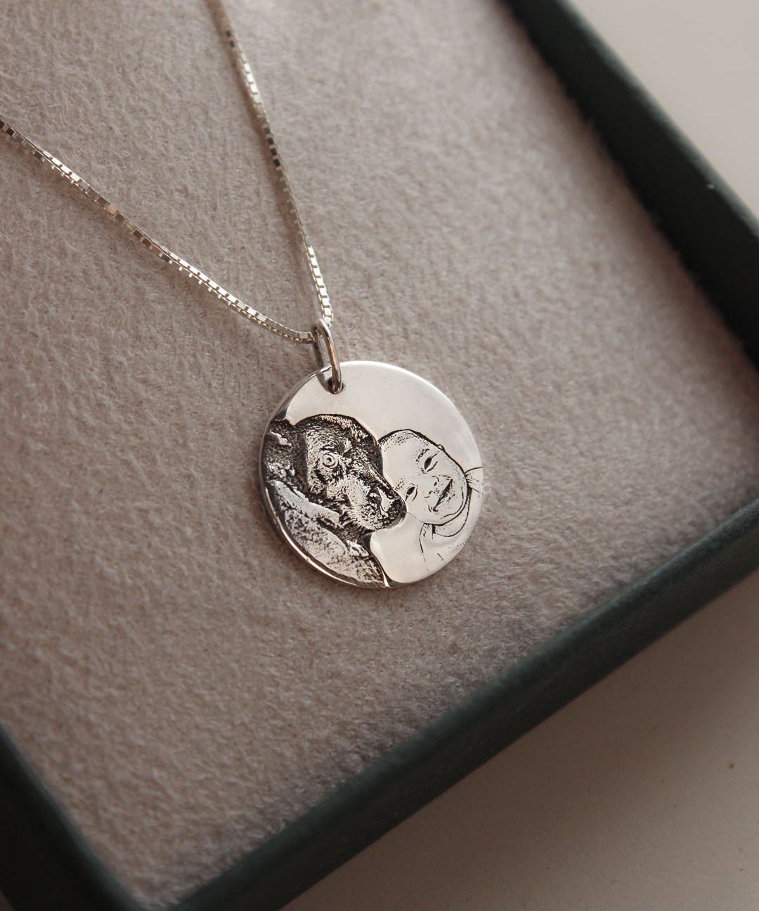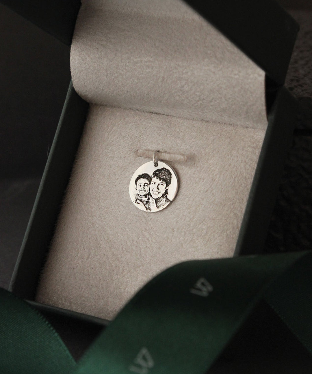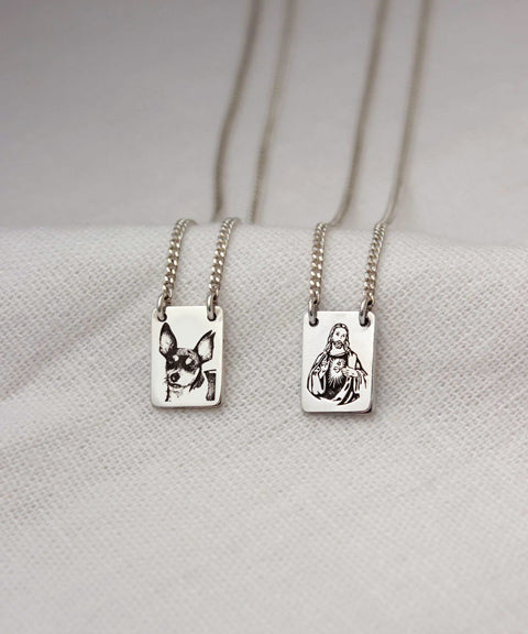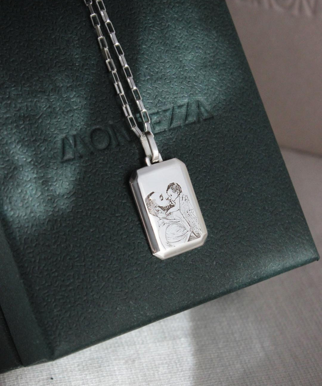 Pingente Placa Foto Personalizado Ouro 18K e Prata 950