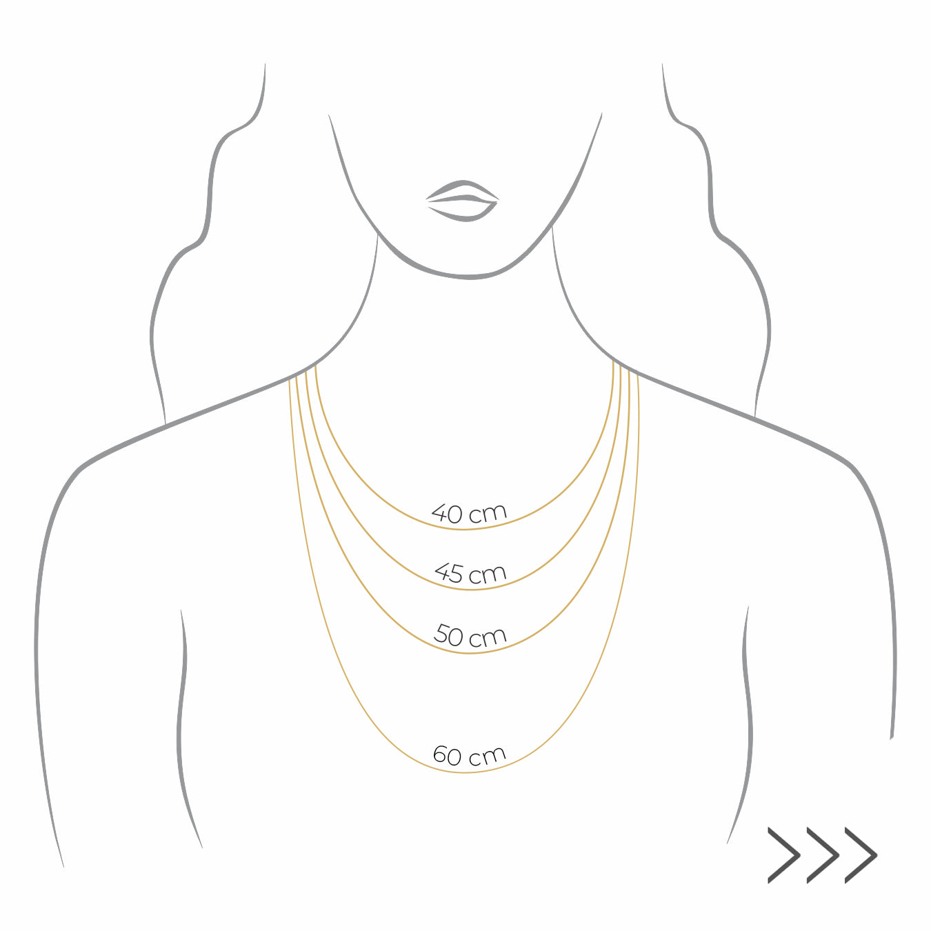 Confira a comparação entre os comprimentos de colares disponíveis.