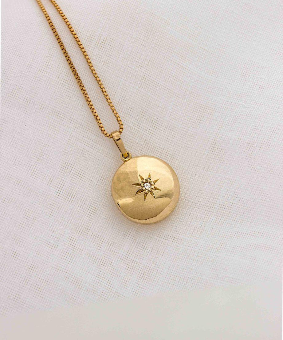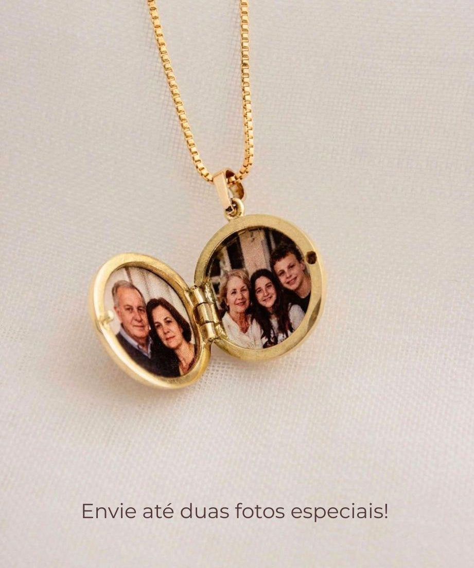 Pingente Relicário Redondo Estrela Personalizado Ouro 18K