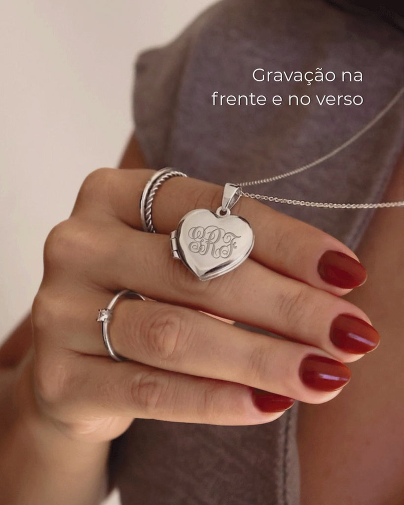 Pingente Relicário Coração Liso Personalizado em Prata 925