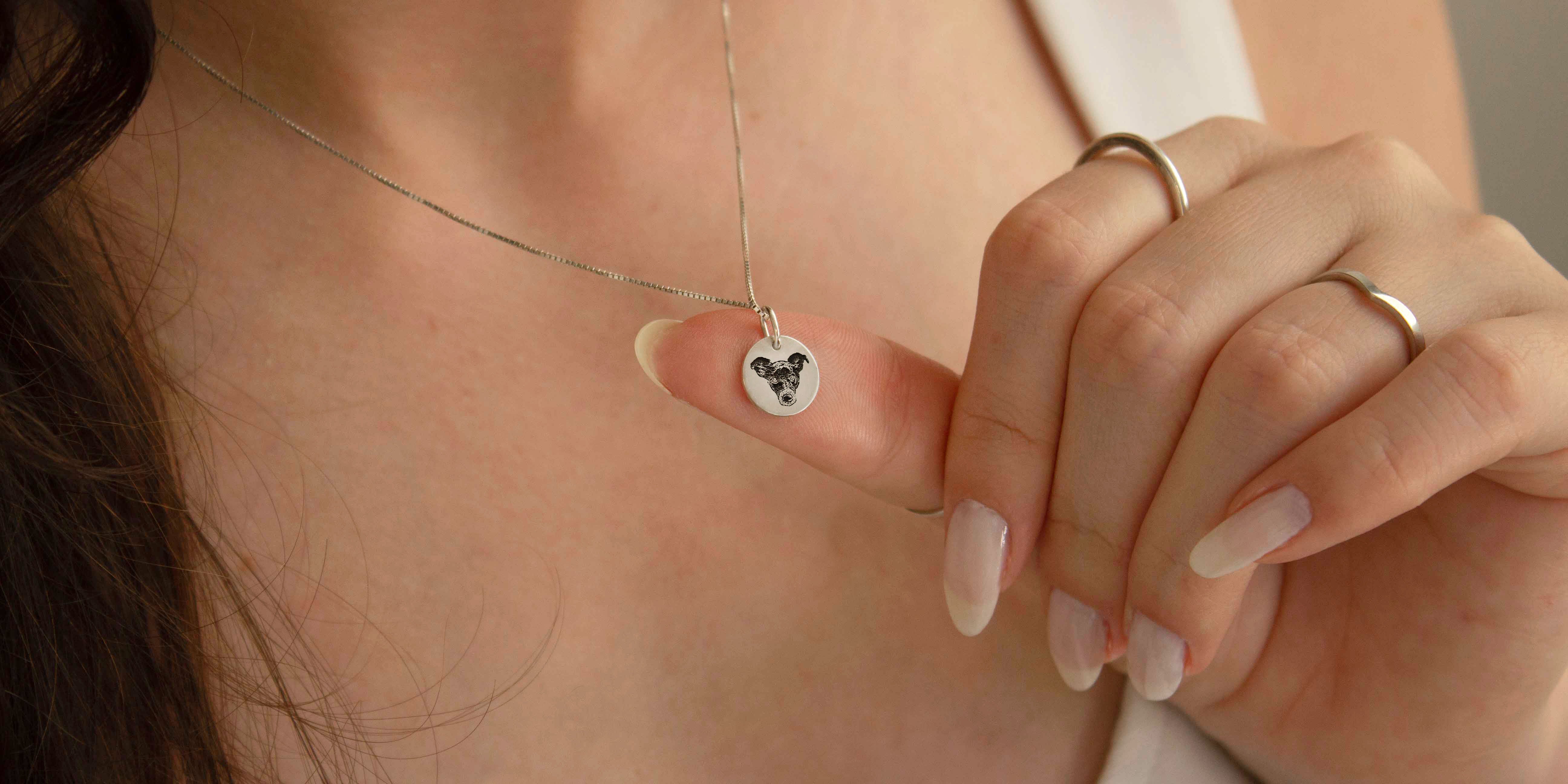 Grave a foto do seu amiguinho em diferentes modelos de pingentes.