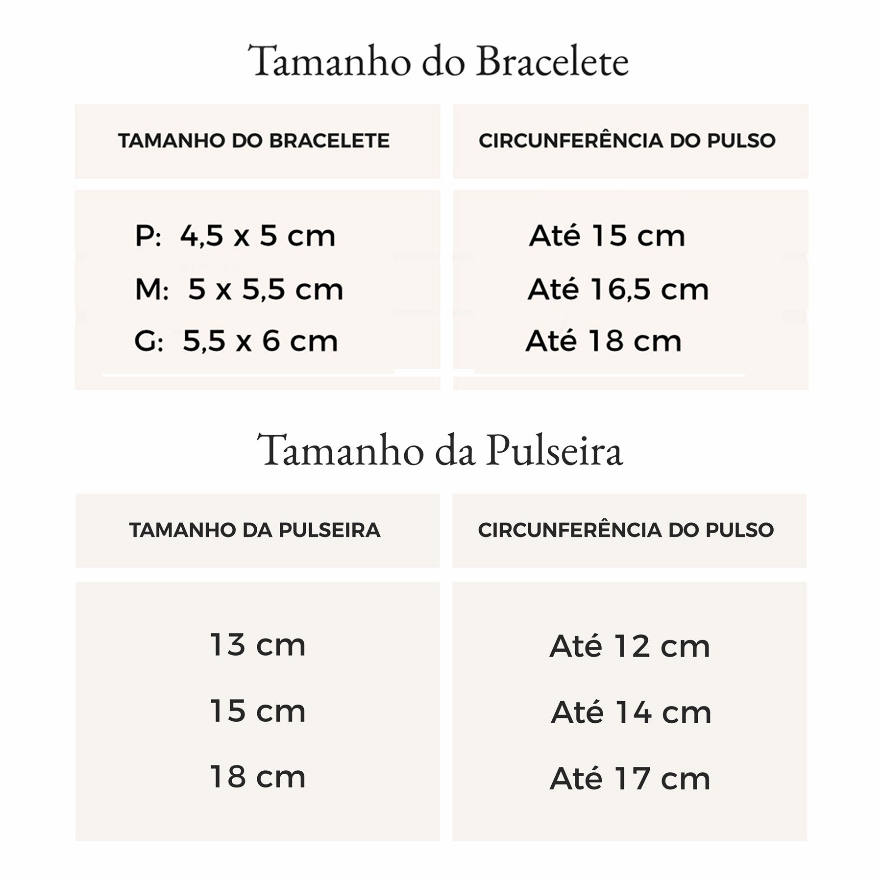 4. Prontinho! Agora é só comparar as medidas na tabela e ver o tamanho da sua pulseira ou bracelete correspondente.