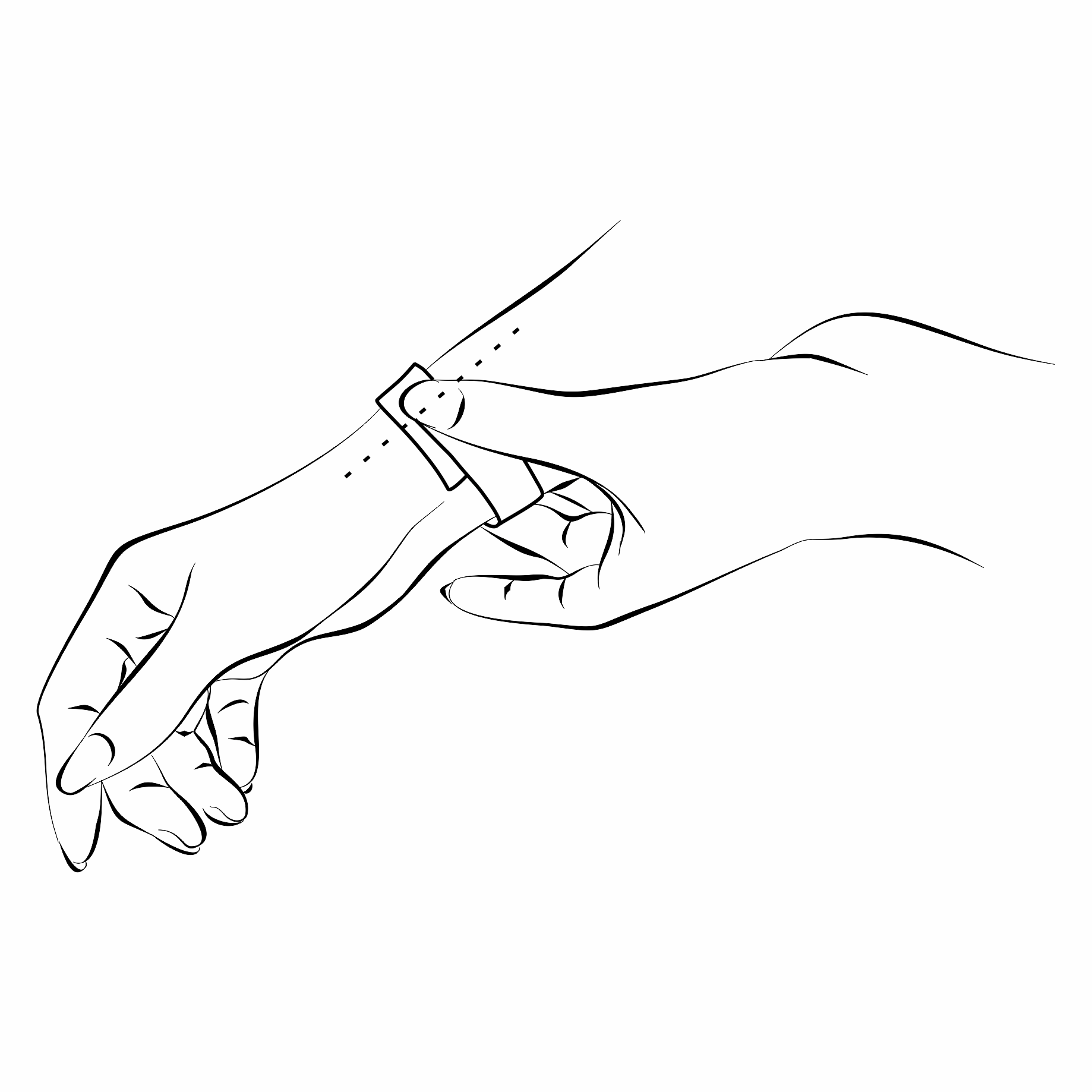 2. Envolva a tira bem ajustada ao pulso e marque o final da ponta.