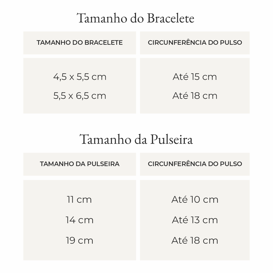 4. Prontinho! Agora é só comparar as medidas na tabela e ver o tamanho da sua pulseira ou bracelete correspondente.