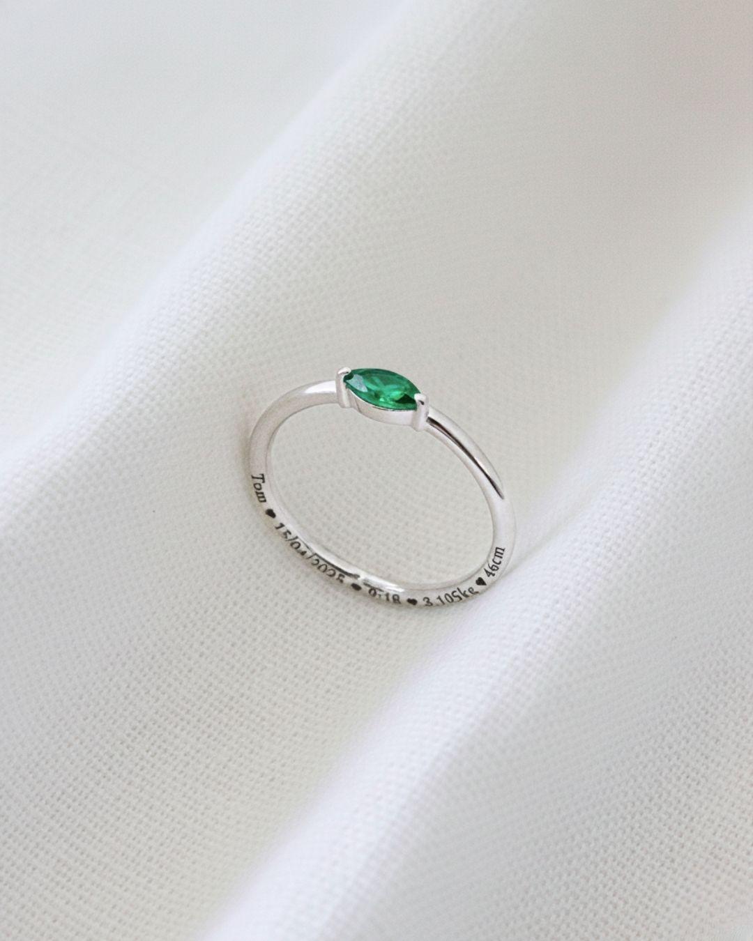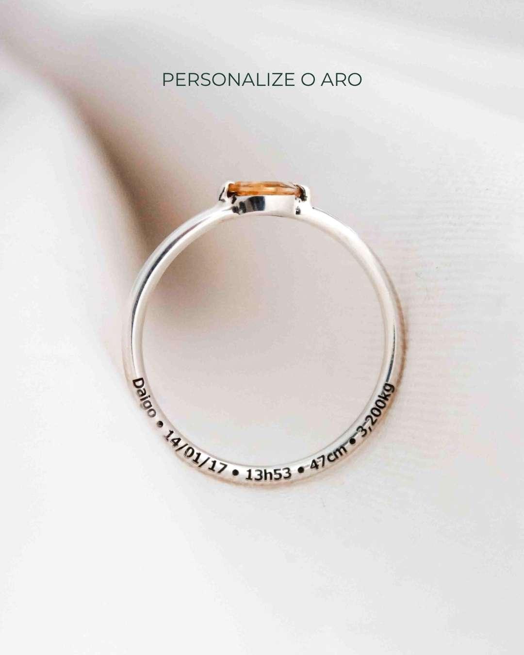 O Anel Navete Memórias Daigo é um anel solitário em Ouro 10K com pedra colorida em lapidação navete que permite a gravação de algo único e especial no aro. Você pode escolher a cor da sua pedra preferida entre: Verde, Rosa, Laranja, Azul Escuro ou Azul Claro e personalizar o aro com mensagens únicas.