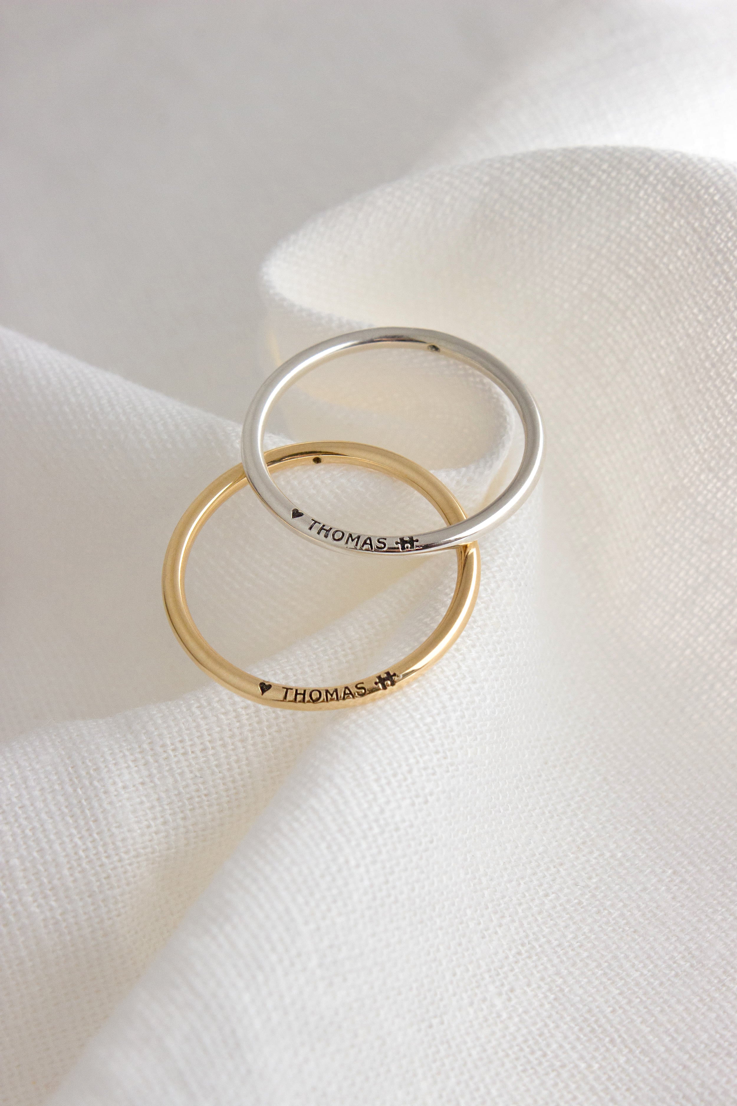Modelo Aro Memórias: Além da travessa personalizável no topo leva como diferencial a possiblidade de gravar mais 60 caracteres no aro com o que desejar. O aro possui um perfil arredondado de 1,6mm.
