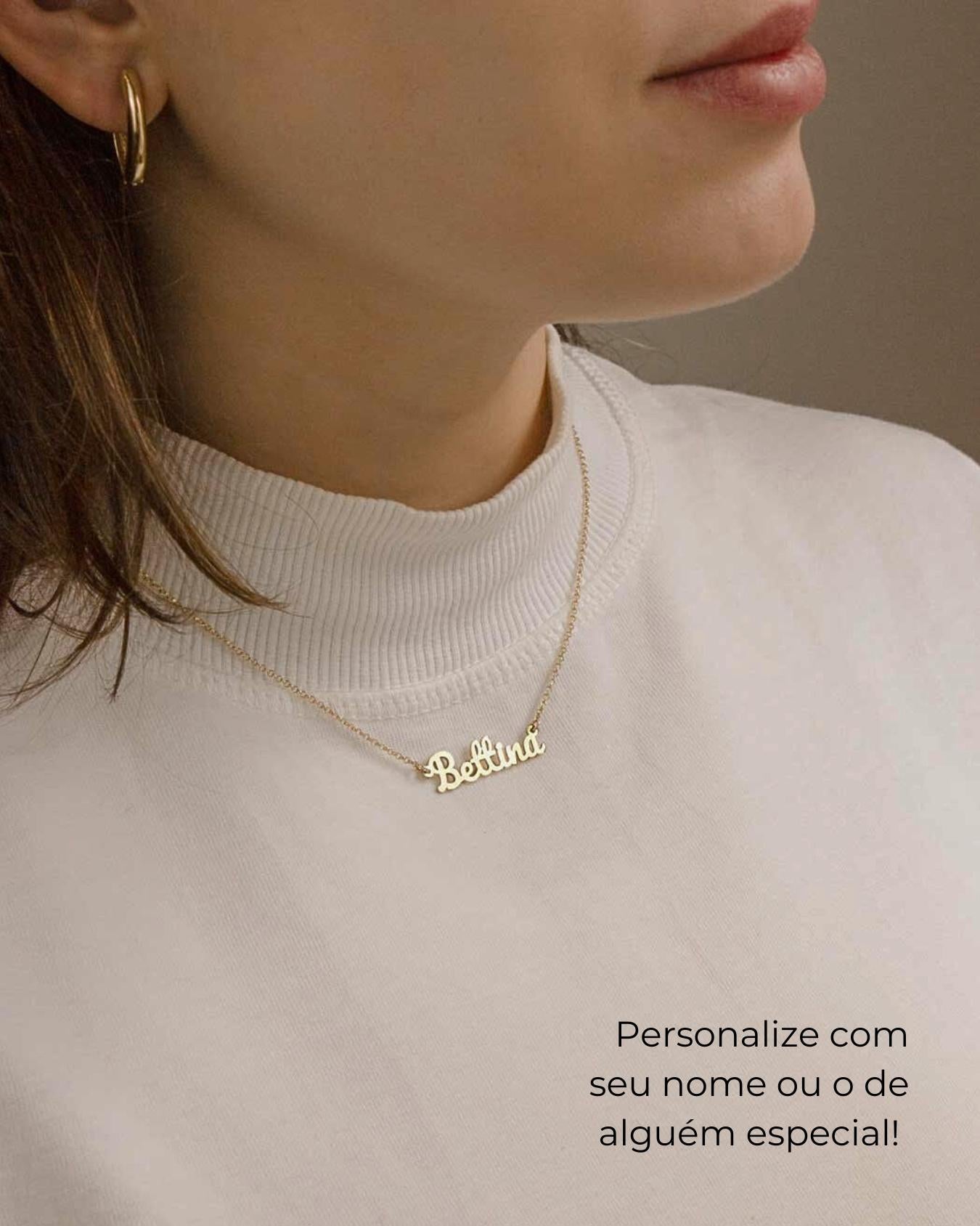 Feito totalmente em ouro 18K, o colar nome une delicadeza e personalização à sua joia. Use seu próprio nome ou o nome de quem você ama ao montar o seu pingente para o colar, fazendo com que esta joia tenha um significado único e especial.
